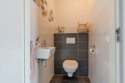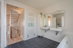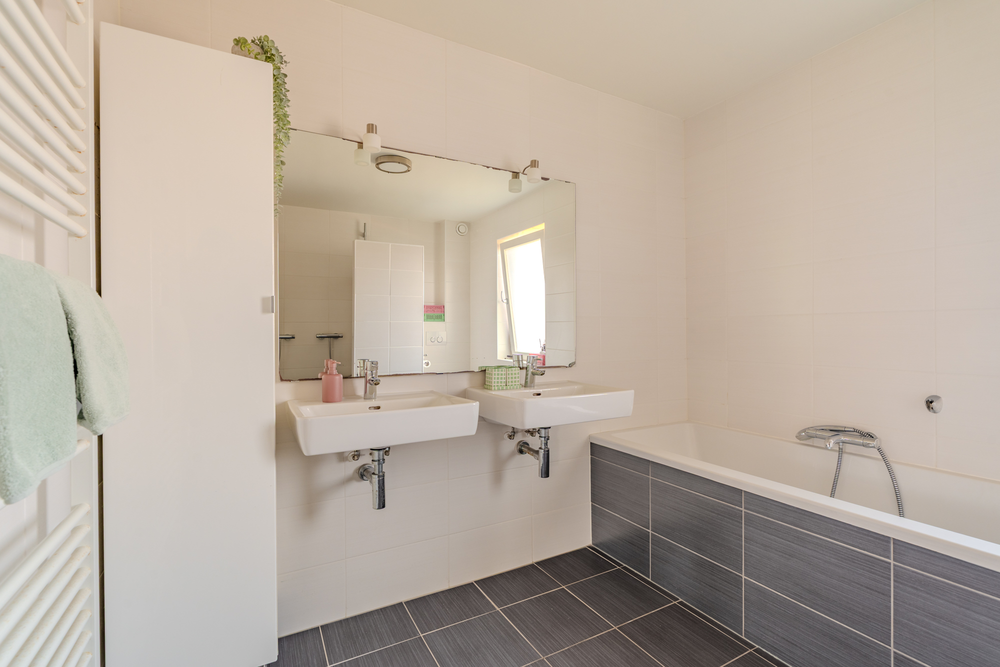 1e verdieping: overloop; 4 slaapkamers (ca. 14.7m², 13.8m² 10.8m² en 9.6m²); badkamer met dubbele inloopdouche, ligbad, dubbele wastafel, 2e toilet (wandcloset) en vloerverwarming.