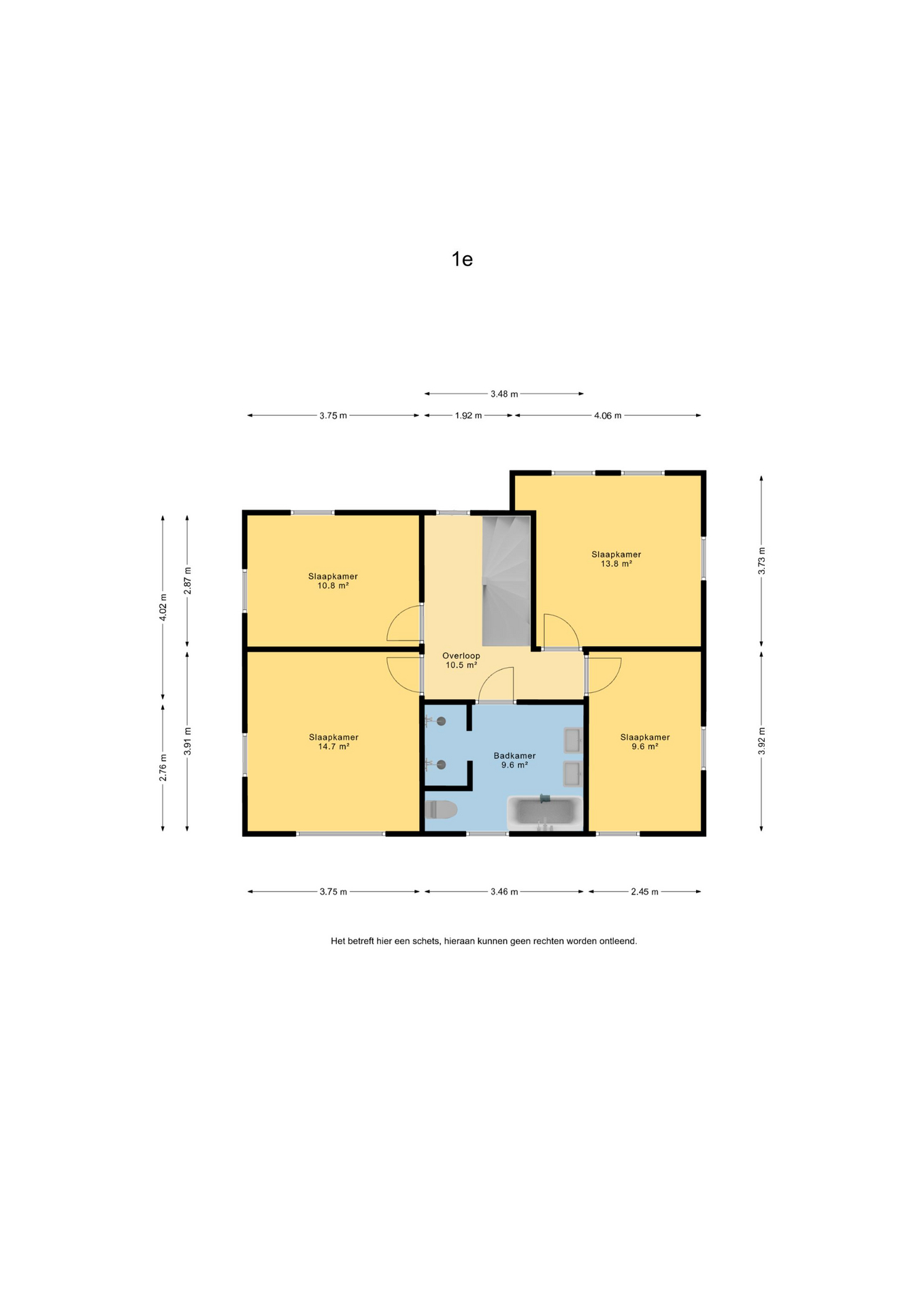 2e verdieping: overloop; 2 slaapkamers (ca. 13.1m² en 11.5m²); berging-/CV-ruimte.