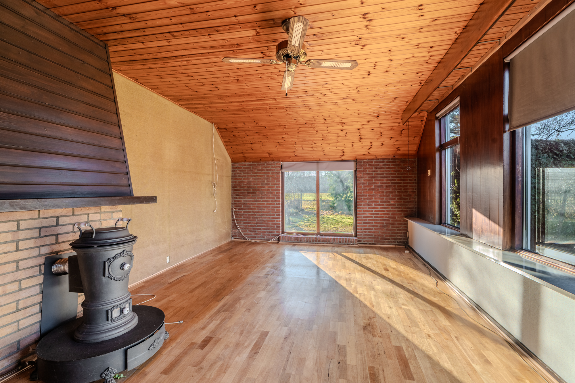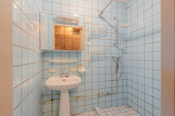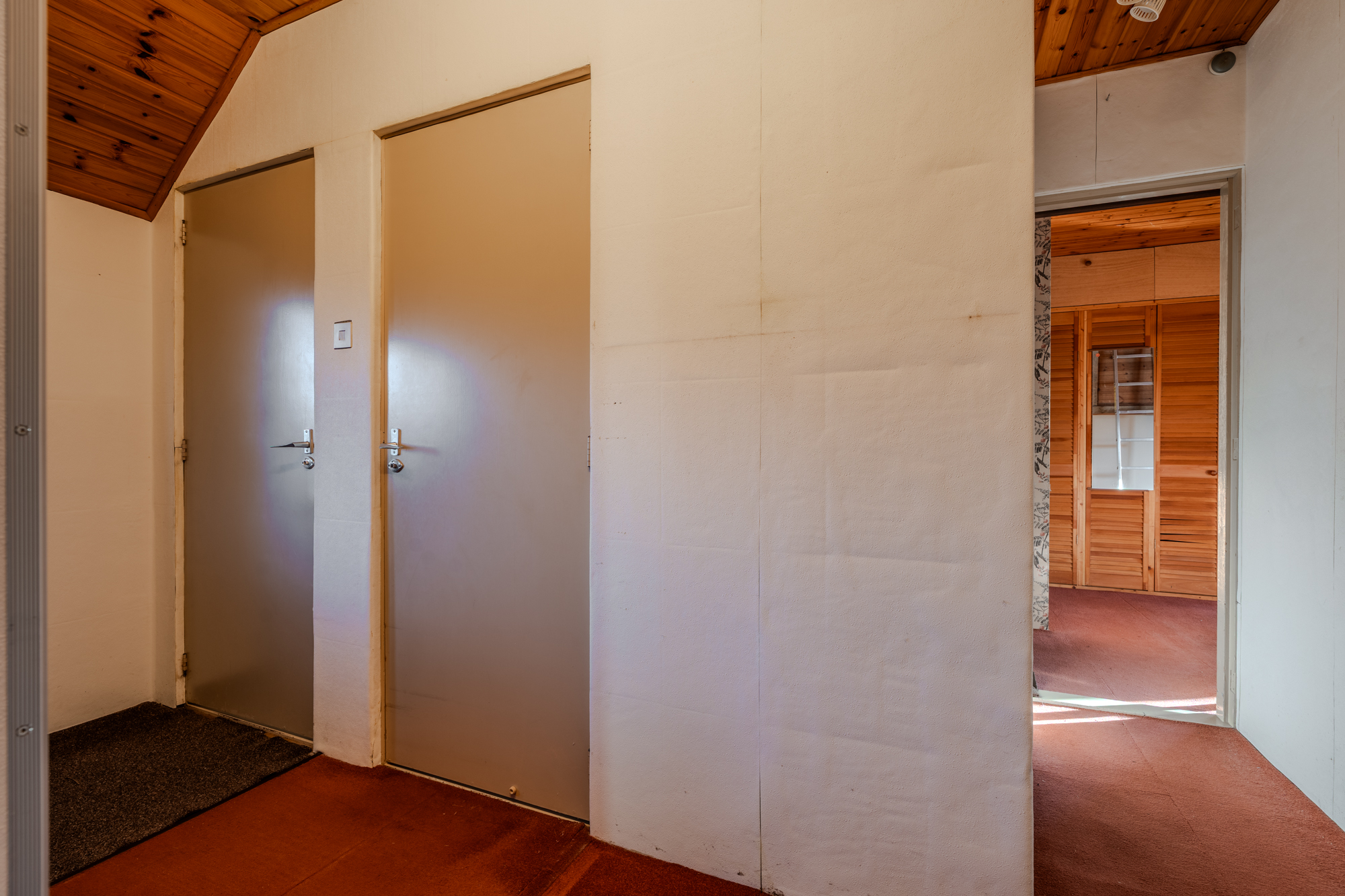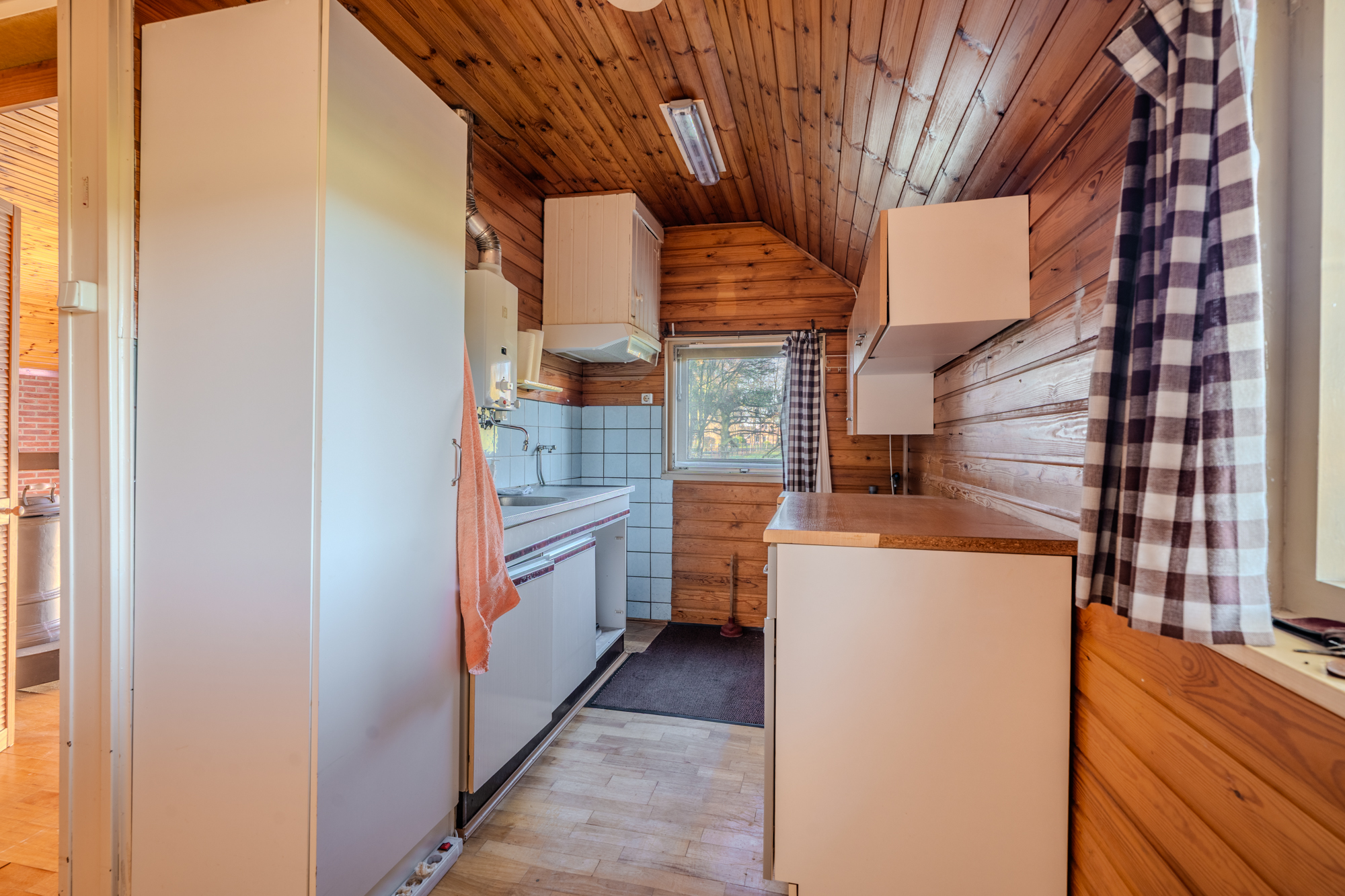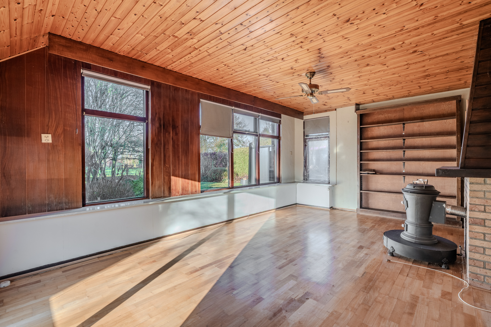 Indeling: centrale hal met zij-entree en meterkast; toiletruimte; doucheruimte met wastafel; keuken (ca. 13m²) met een eenvoudig keukenblok; woonkamer (ca. 22.8m²); slaapkamer (ca. 13.8m²) met vaste inbouwkasten en een doorgang naar een 2e slaapkamer (ca. 8.5m²); 3e slaapkamer (ca. 8.8m²); bijkeuken (ca. 10.3m²) met achter-entree en vlizotrap naar een ruime bergzolder.