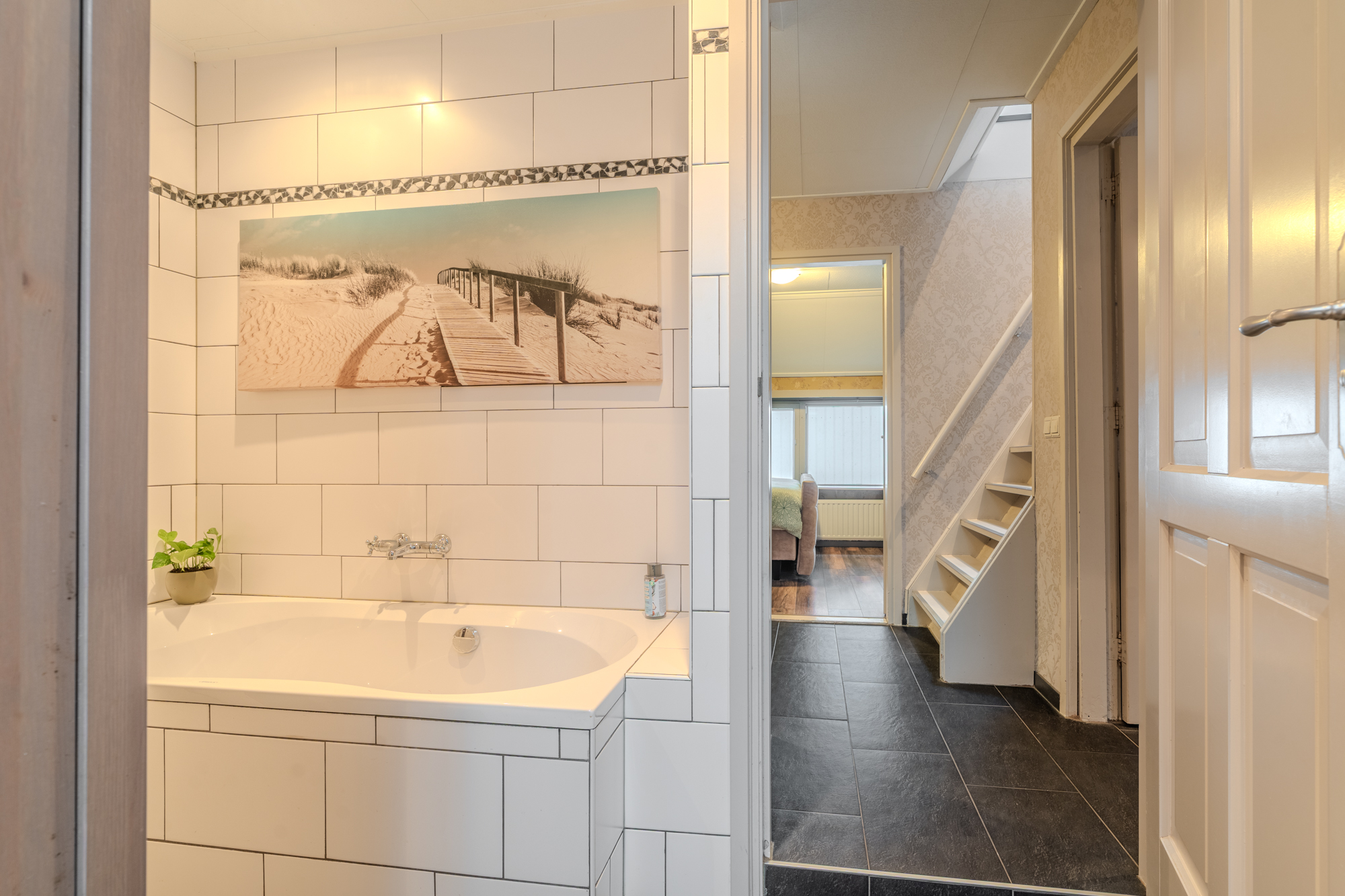 Indeling - begane grond: centrale hal met (achter)entree en trapopgang; 3 slaapkamers (ca. 13.6m², 9.5m² en 8.9m²); badkamer (vernieuwd in 2013) met inloopdouche, ligbad, badmeubel met dubbele wastafel en toilet (wandcloset); woonkamer (ca. 24.7m²) met 3 extra dakramen voor meer daglicht en een semi-open keuken (ca. 11.5m²) v.v. inbouwkeuken in hoekopstelling (vernieuwd in 2015) met diverse apparatuur (o.a. keramische kookplaat, afzuigkap, oven, koel-/vriescombinatie en vaatwasser); bijkeuken met witgoedaansluitingen (voormalige hal met voordeur).