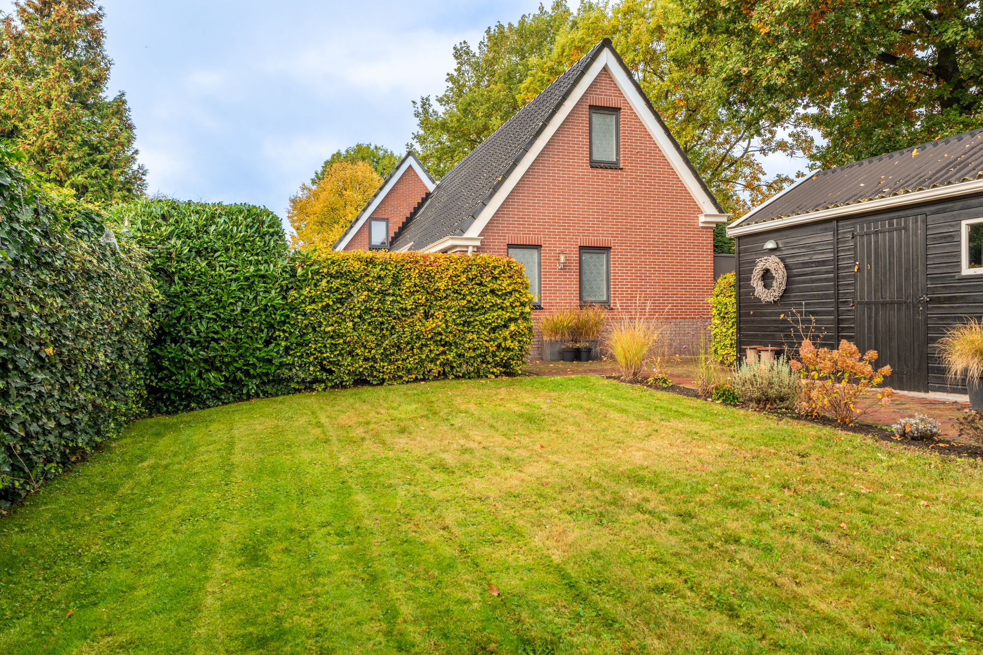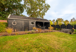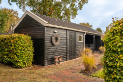 • Vrijstaande houten schuur met sfeervolle overkapping.