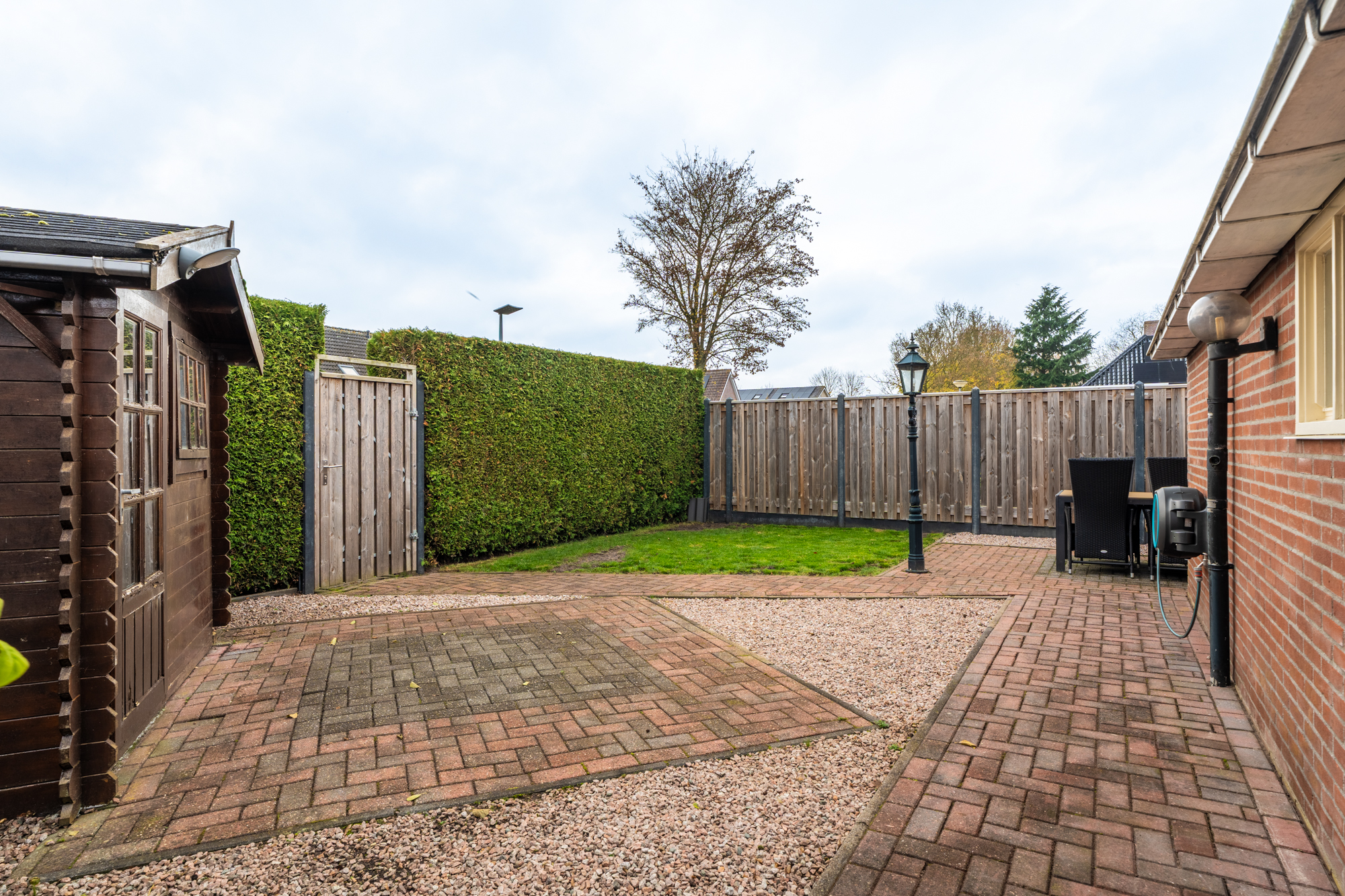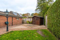 De besloten tuin met een ligging op het zuidwesten is in 2013 fraai aangelegd waarbij in 2021 de schuttingen zijn vernieuwd en aan de voorzijde voldoende ruimte is met een lange oprit geschikt voor het parkeren van meerdere auto's op eigen terrein.