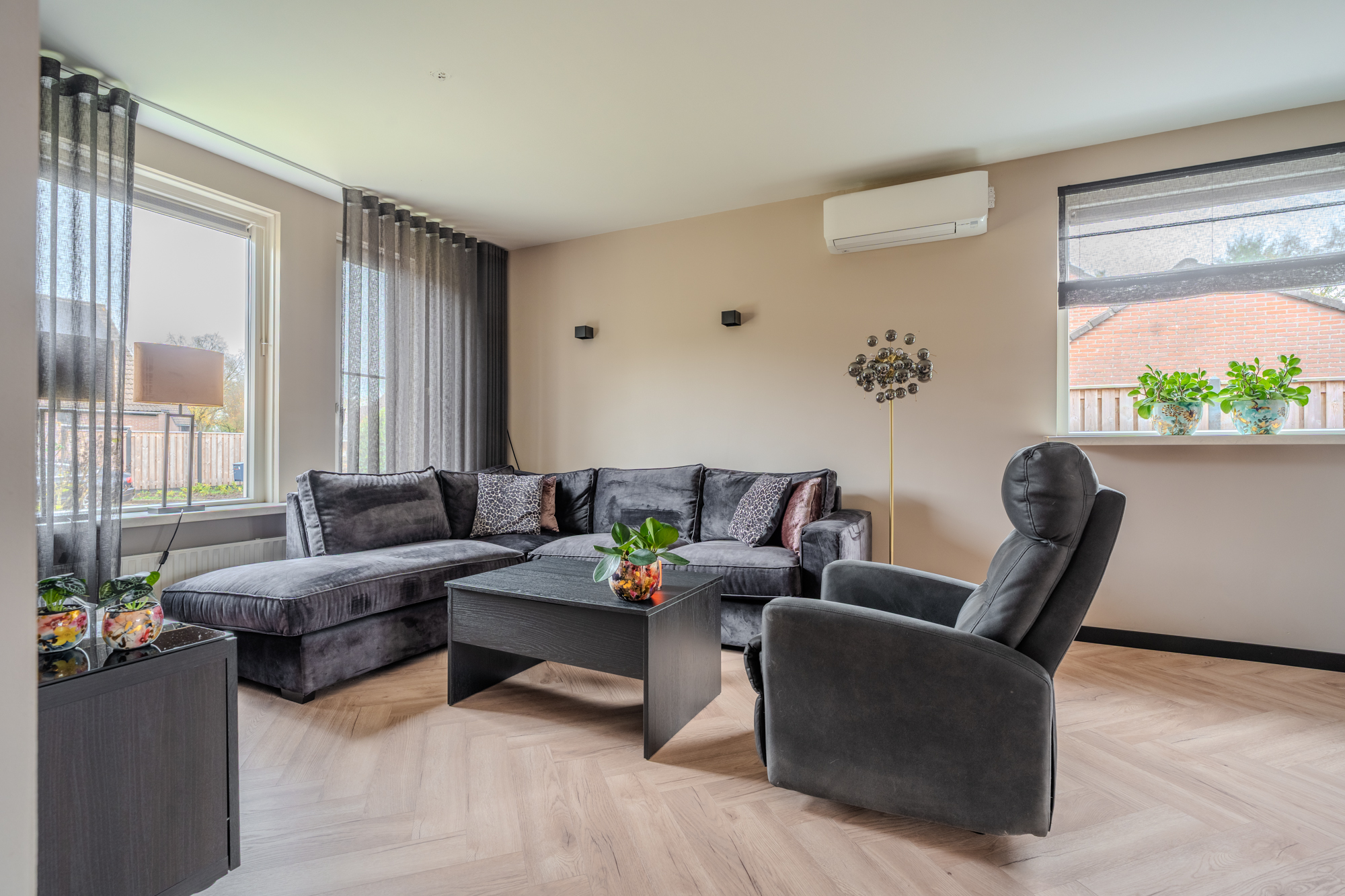 - verwarming middels CV (Intergas HR combiketel, bouwjaar 2010), deels elektrische vloerverwarming (slaap-/en badkamer op de begane grond) en airco-units.