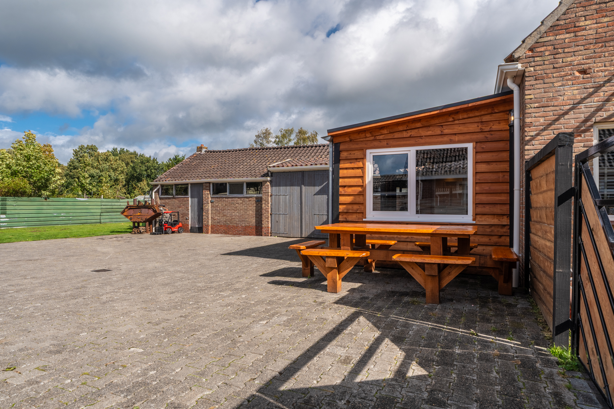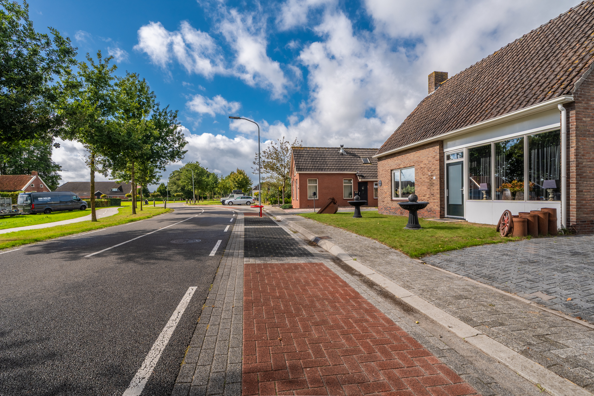 Aan een doorgaande weg in lintbebouwing en met uitzicht op tegenover gelegen landerijen staat deze vanaf 2021 gemoderniseerde vrijstaande (bedrijfs)woning met een aangebouwde schuurruimte-/garage op een perceel van 765m² grond. Het buitenterrein is grotendeels verhard met H-klinkers en het geheel heeft op dit moment een bedrijfsbestemming, waarmee de schuur voor allerlei doeleinden is te gebruiken.