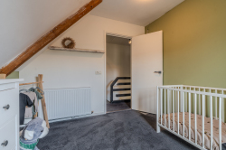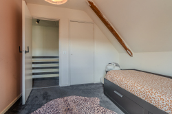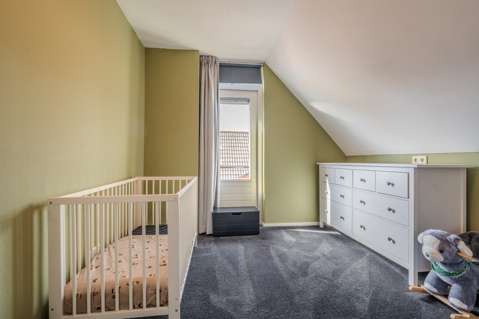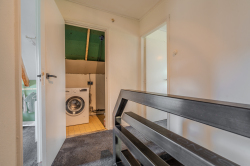 Verdieping: overloop; wasruimte met witgoedaansluitingen; 2 slaapkamers (ca. 7.2m² en 7.4m²) beide met toegang tot een balkon en één met een vaste inbouwkast; ruime ouderslaapkamer (ca. 14.9m²) met vaste inbouwkasten over de gehele breedte.