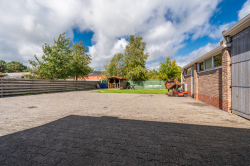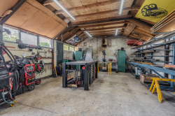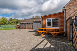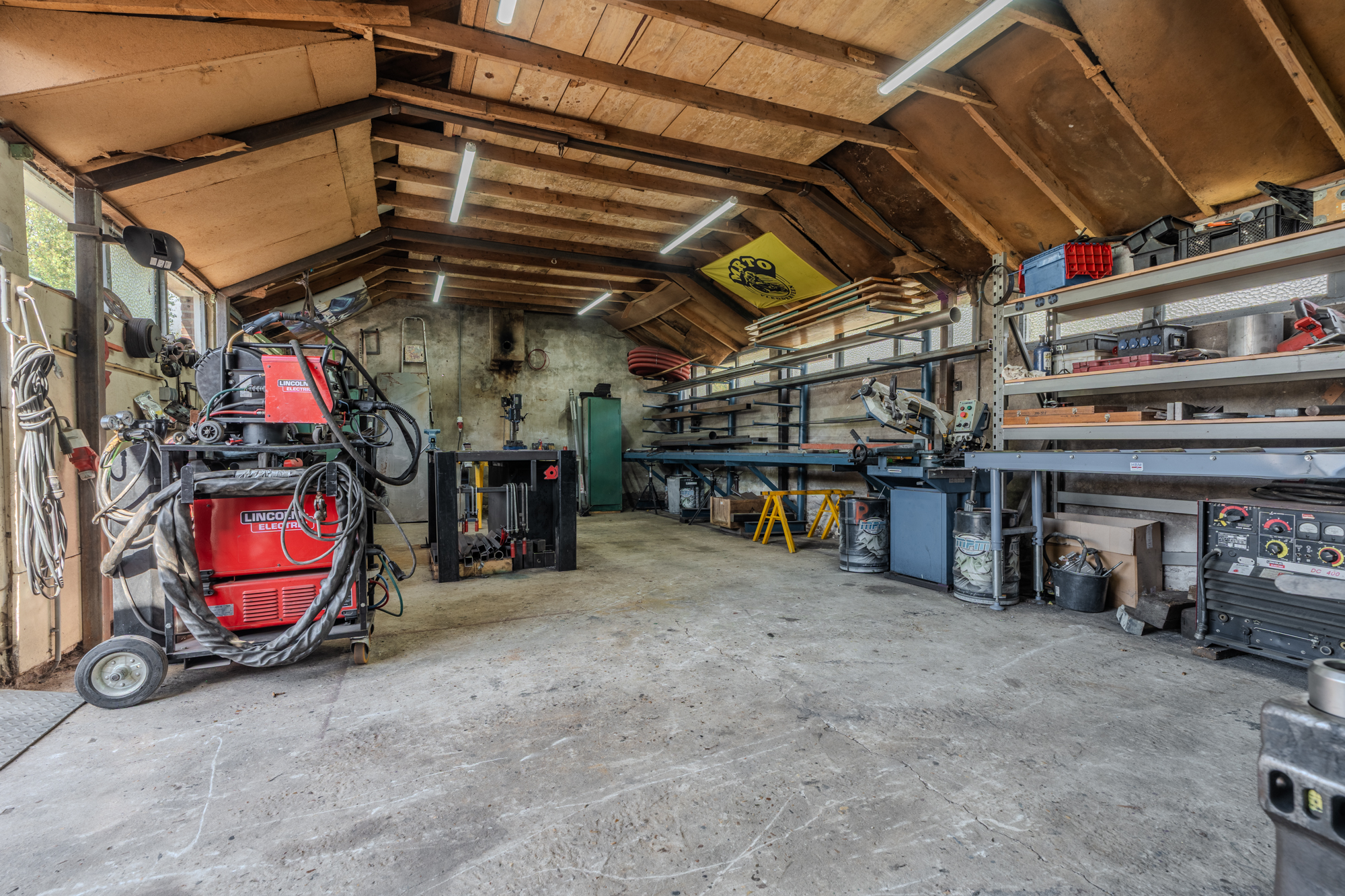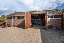 - de aangebouwde schuur is ca. 12.6m x 5.9m (ca. 74m²) is v.v. krachtstroom, stalen spanten en een betonvloer.
