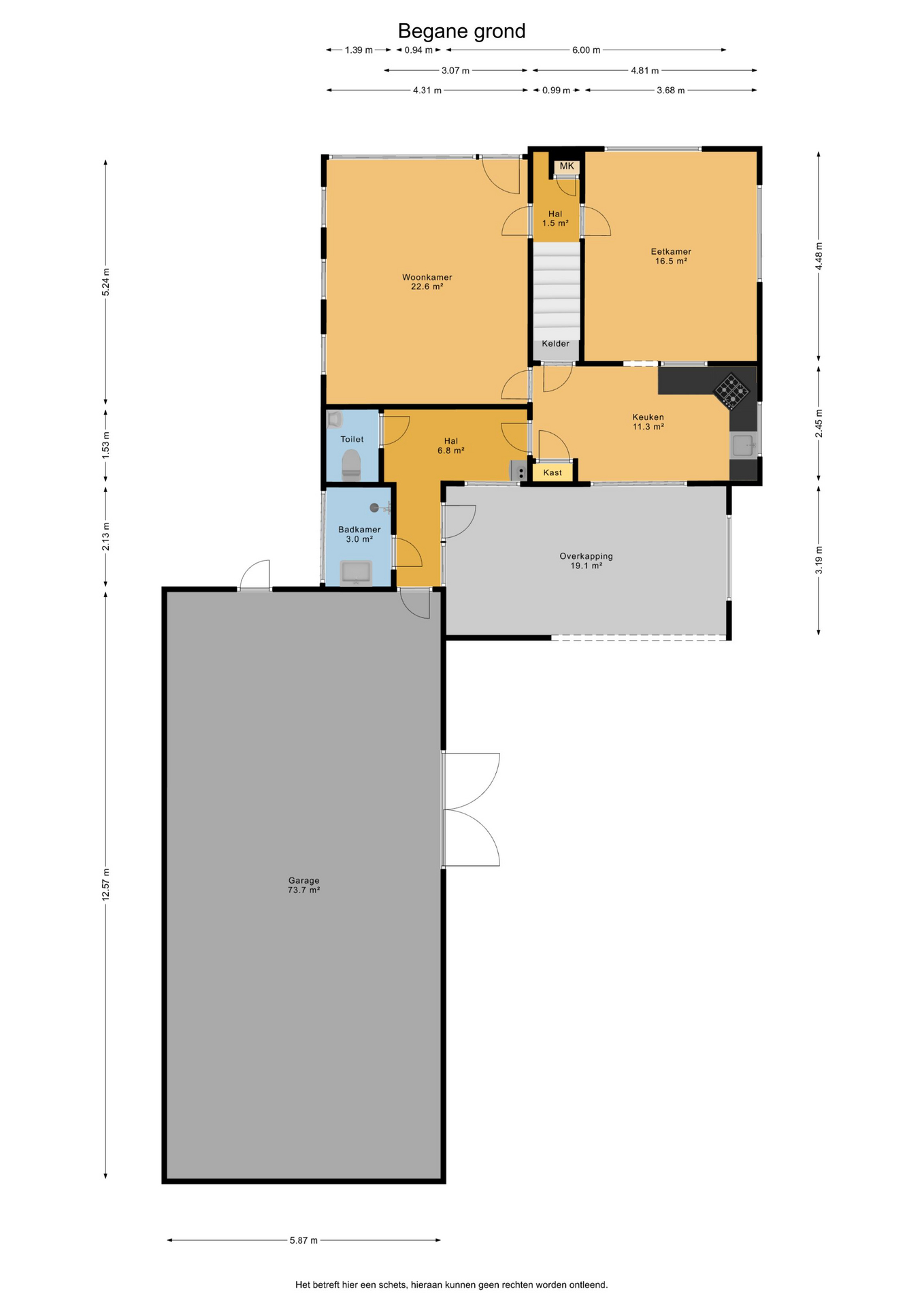 - aan de achterzijde van de woning is in 2025 een overkapping (ca. 19m²) aangebouwd.
