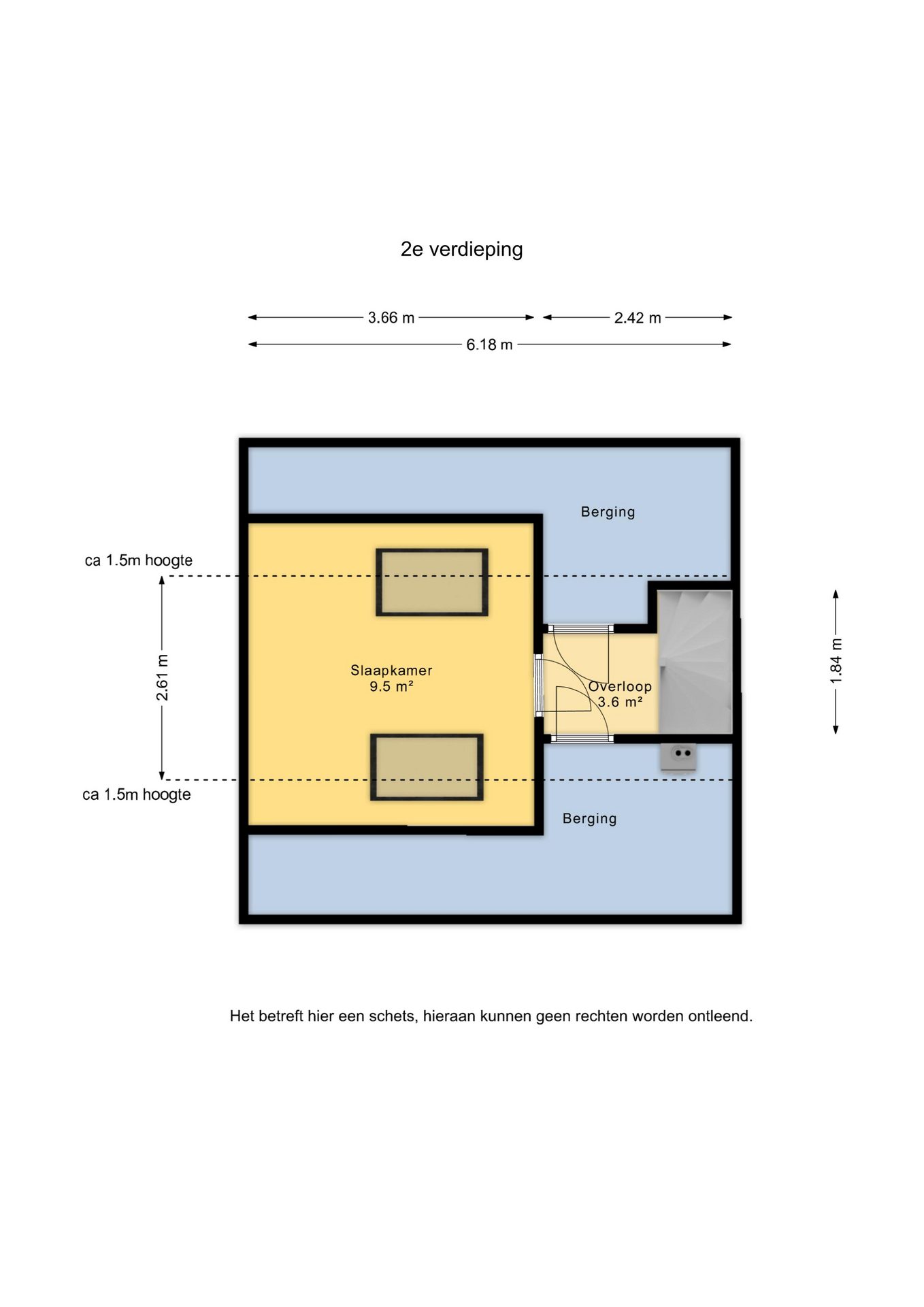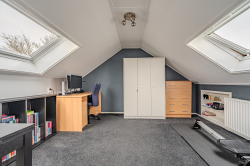 2e verdieping: overloop, 4e slaapkamers (ca. 9.5m²) met 2 grote dakramen; zolder(berg)ruimte met CV-opstelling.