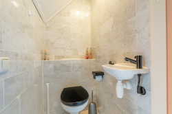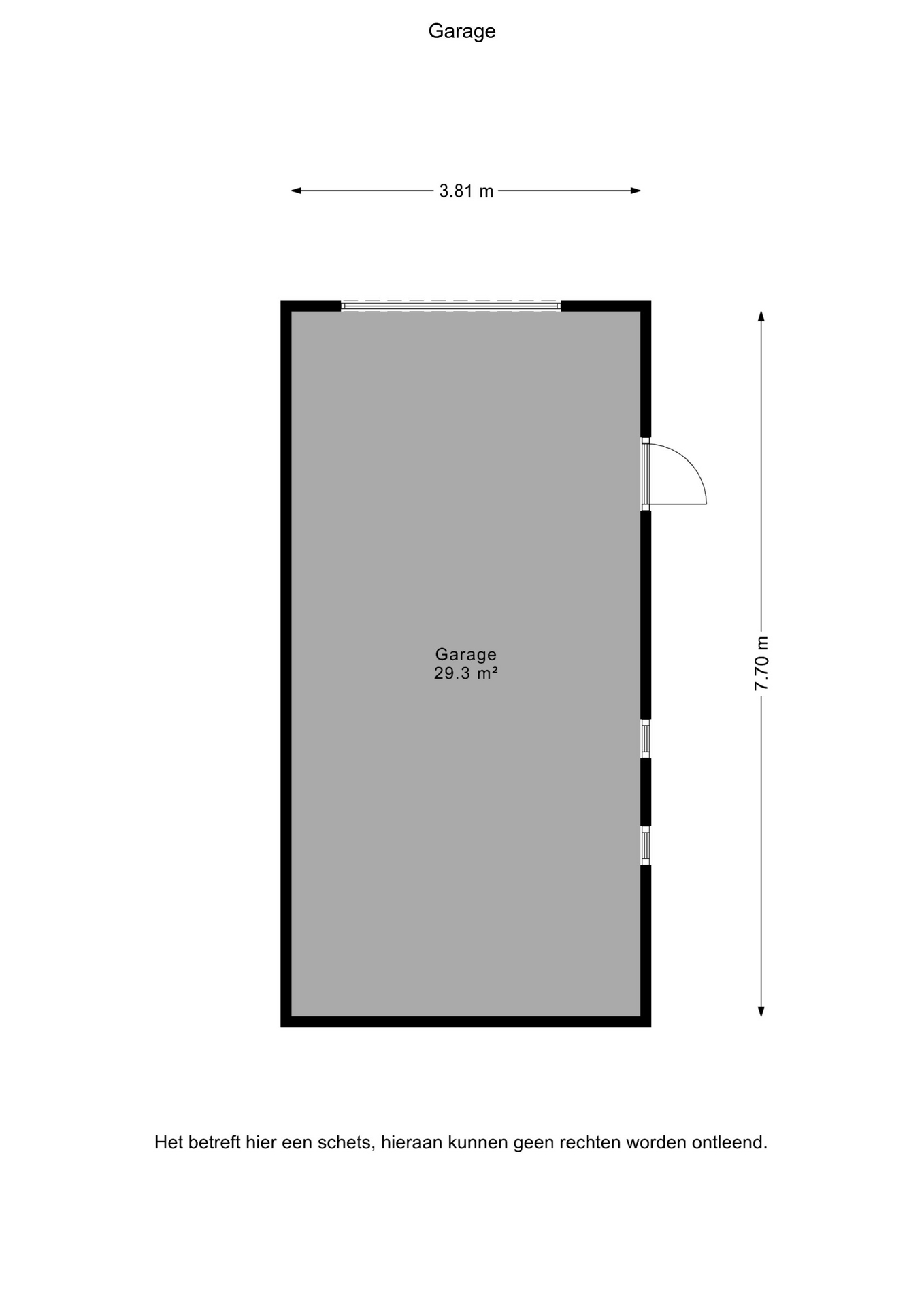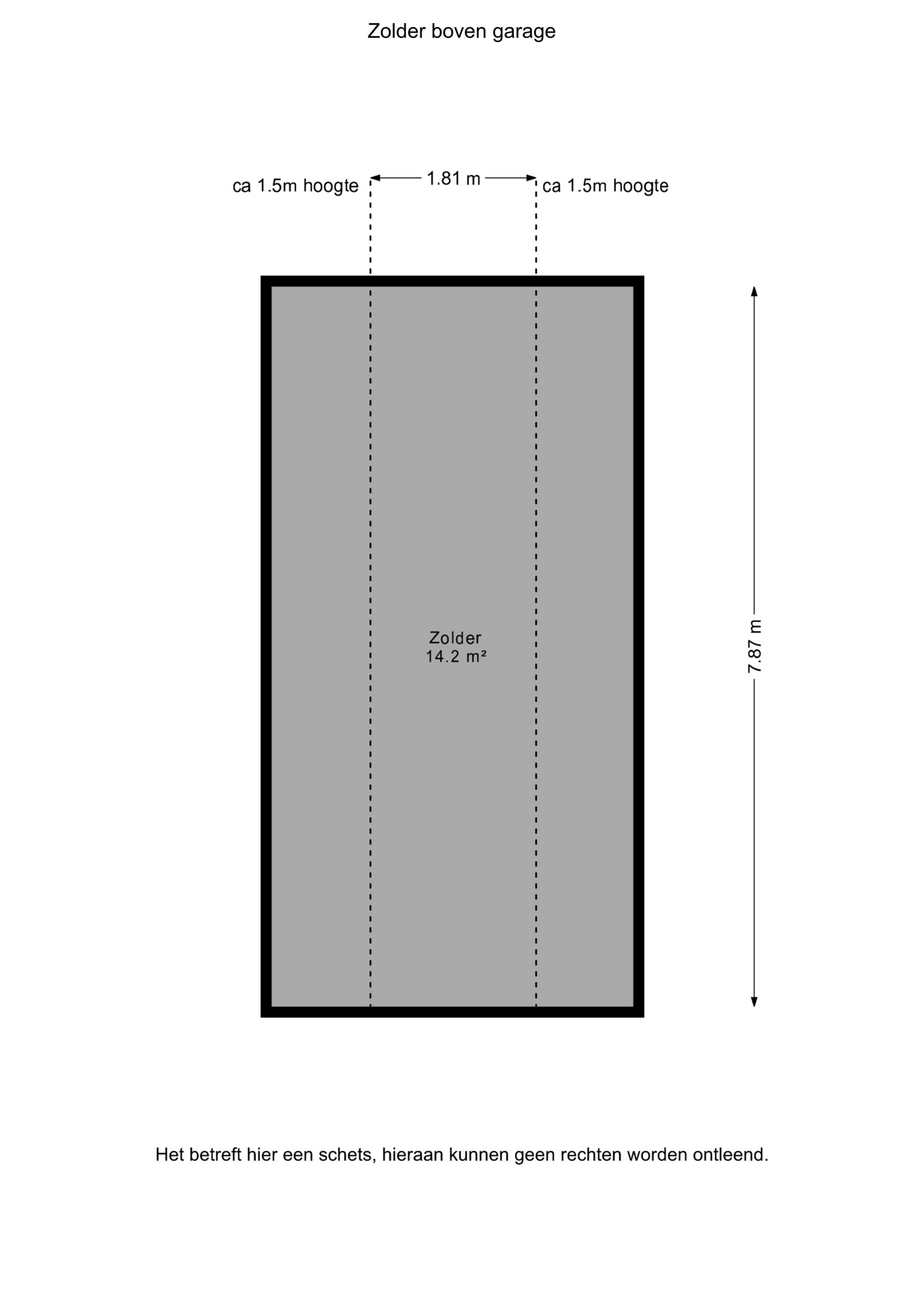 - de vrijstaande garage (ca. 29m²) met een breedte van 3.8m en een diepte van 7.7m beschikt over een ruime zolderverdieping met stahoogte (1.9m) in de nok welke middels een vaste trap bereikbaar is.