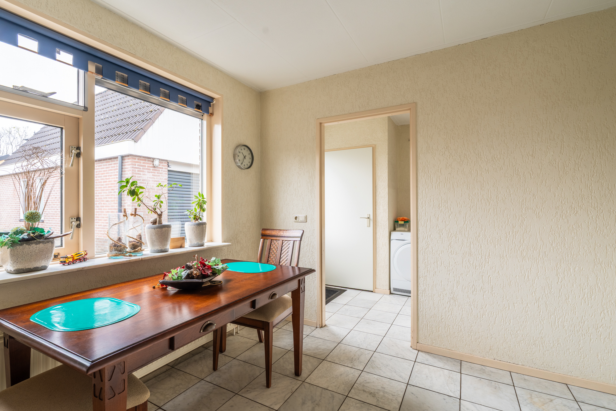Centraal in het dorp staat deze in 1991 nieuw gebouwde halfvrijstaande woning met een vrijstaande stenen garage en een besloten onderhoudsvriendelijk aangelegde tuin op een perceel van 258m².
