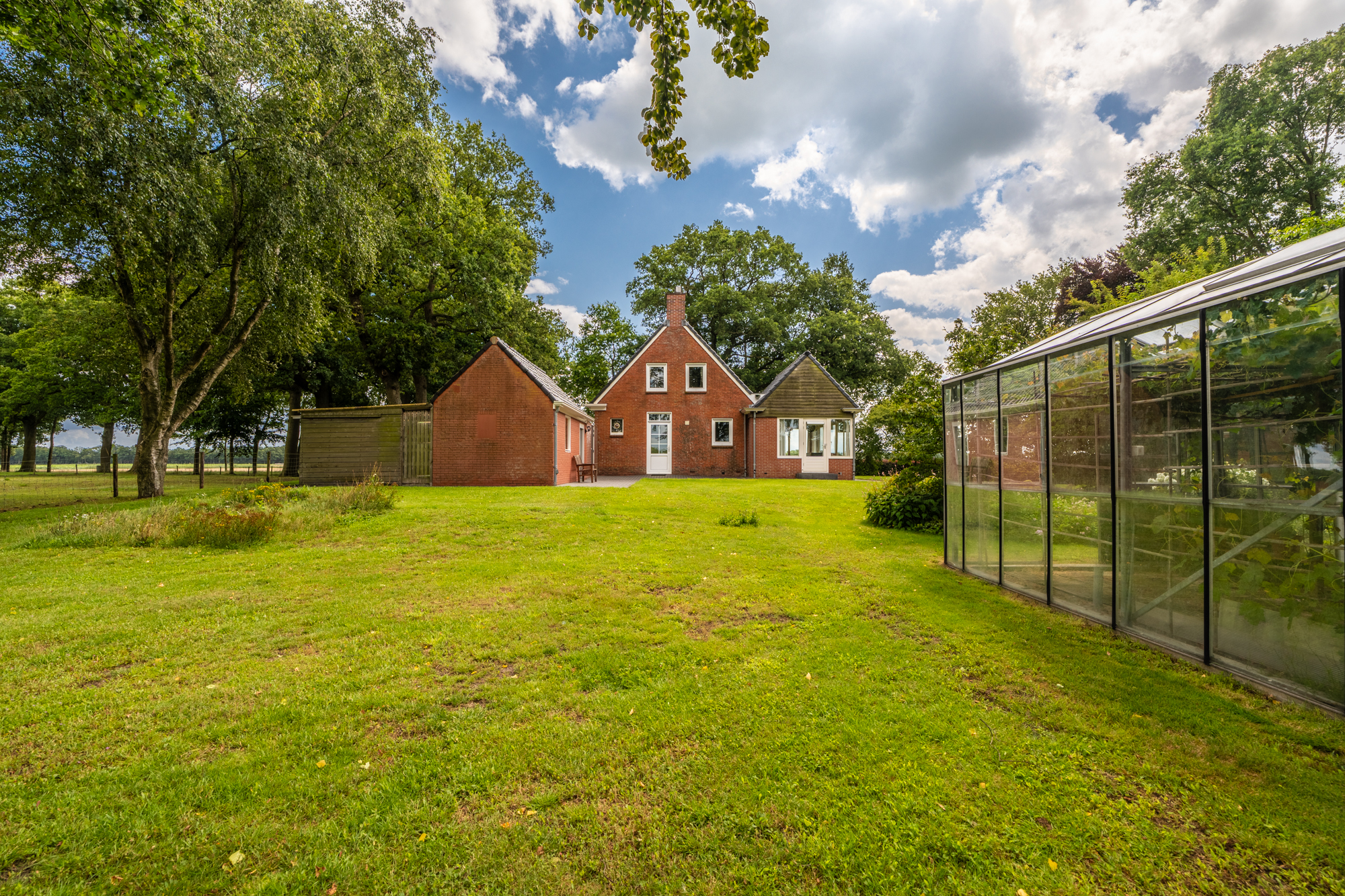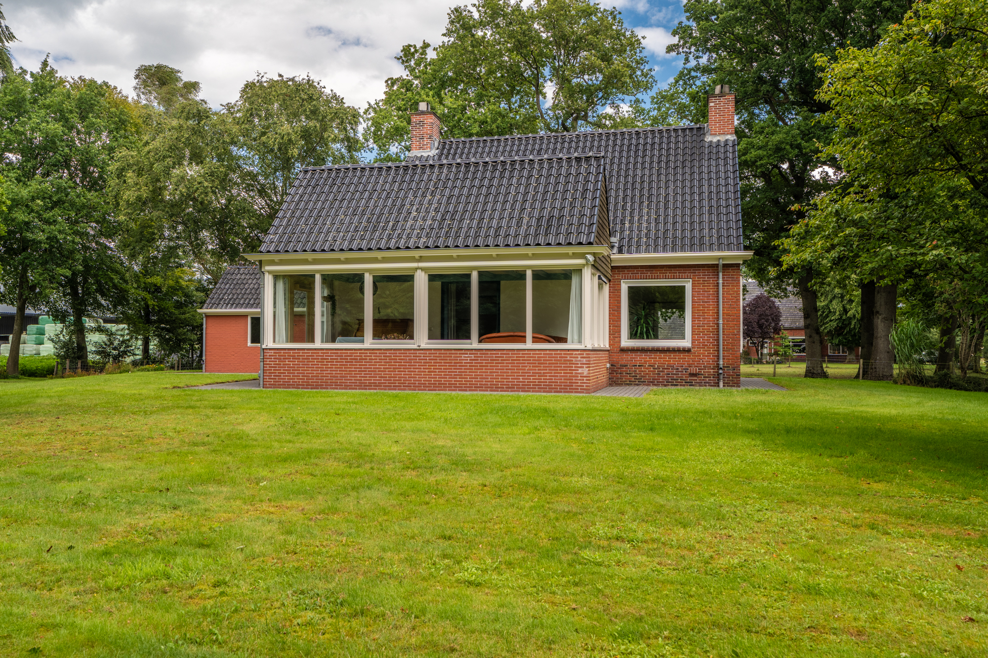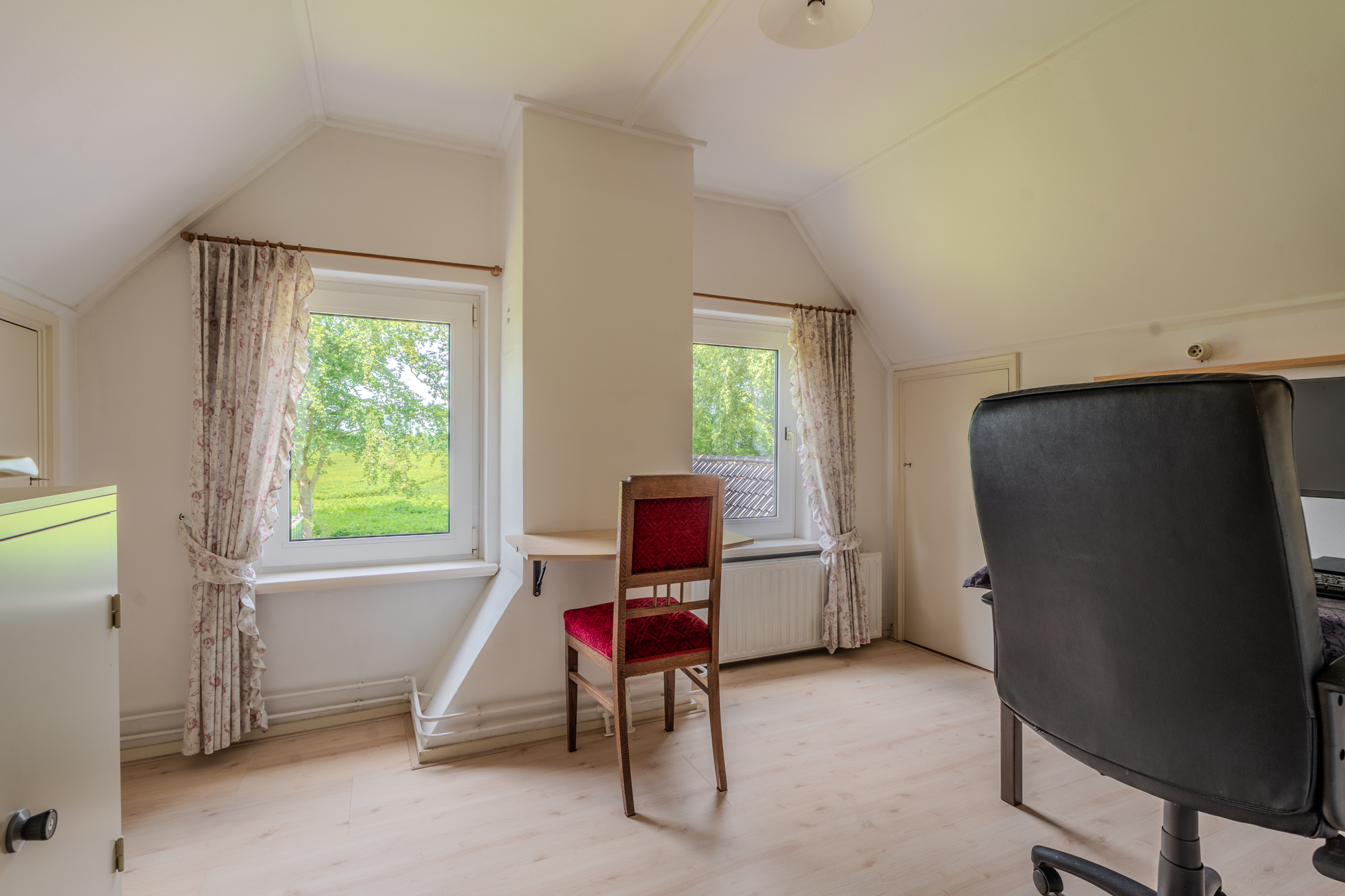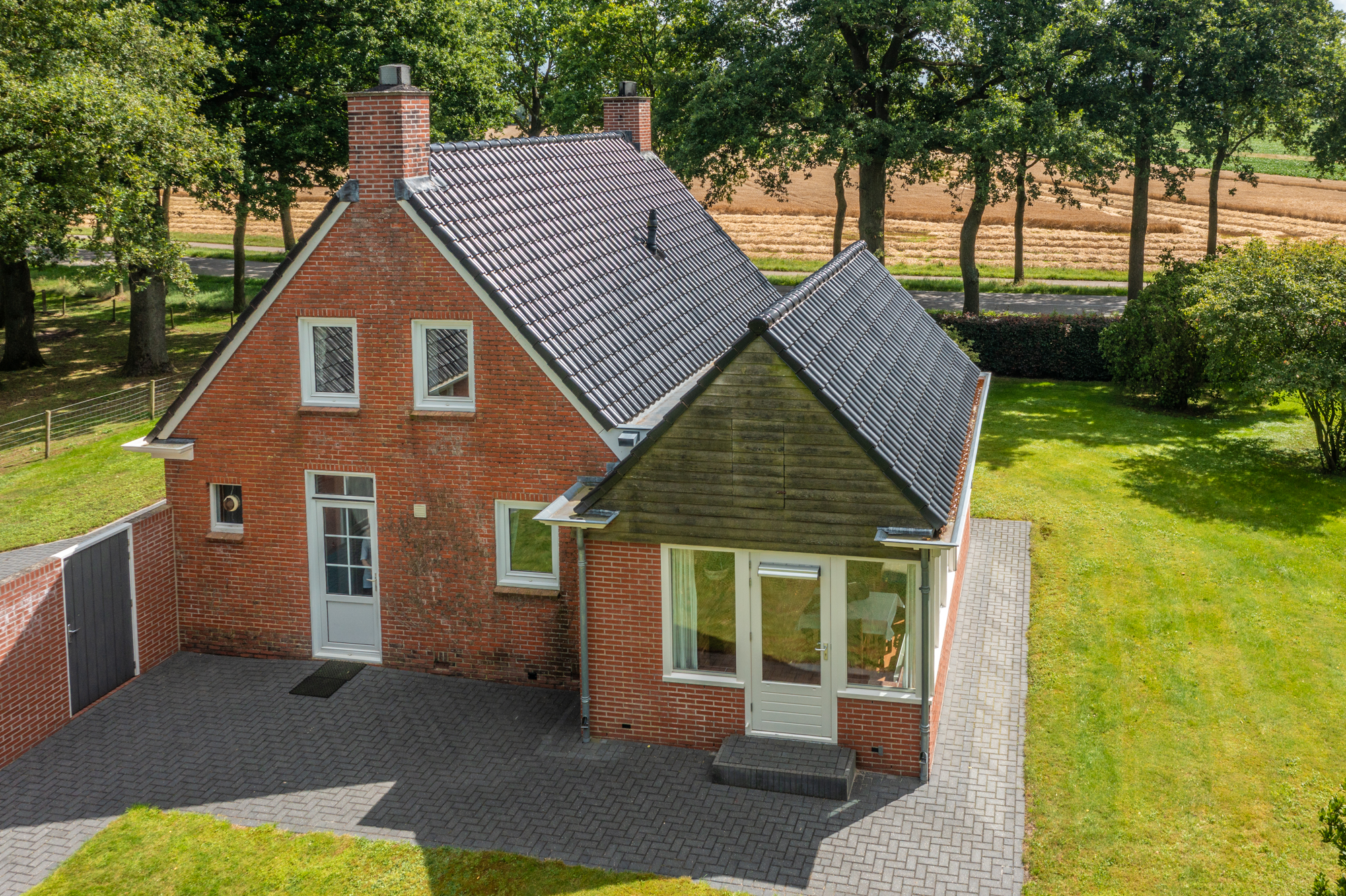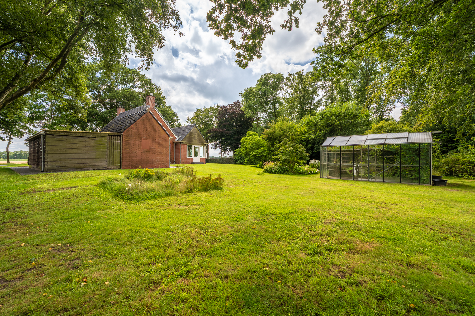 Indeling: hal met zij-entree en trapopgang; woonkamer (ca. 24.8m²) met fraai uitzicht op tegenover gelegen landerijen en een houtkachel; woonkeuken (ca. 11m²) v.v. inbouwkeuken met enige (losse) apparatuur (o.a. gasfornuis, afzuigkap en koelkast) en doorgang naar een aangebouwde serre/eetkamer (ca. 21.7m²) met openslaande tuindeur en een prachtig uitzicht op de tuin en een weids uitzicht over zowel de voor- als achter gelegen landerijen; voorraadkast en kelder (hoogte ca. 1.85m); bijkeuken met achter-entree en witgoedaansluitingen; badkamer met douche en badmeubel v.v. wastafel; toiletruimte. Verdieping: overloop; 2 slaapkamers (ca. 10.8m² en 9.4m²) beide met vaste kastruimte, de slaapkamer aan de voorzijde heeft een inloopkast (ca. 2m²); berging. Verdieping boven de aanbouw: van buitenaf bereikbare bergzolder.