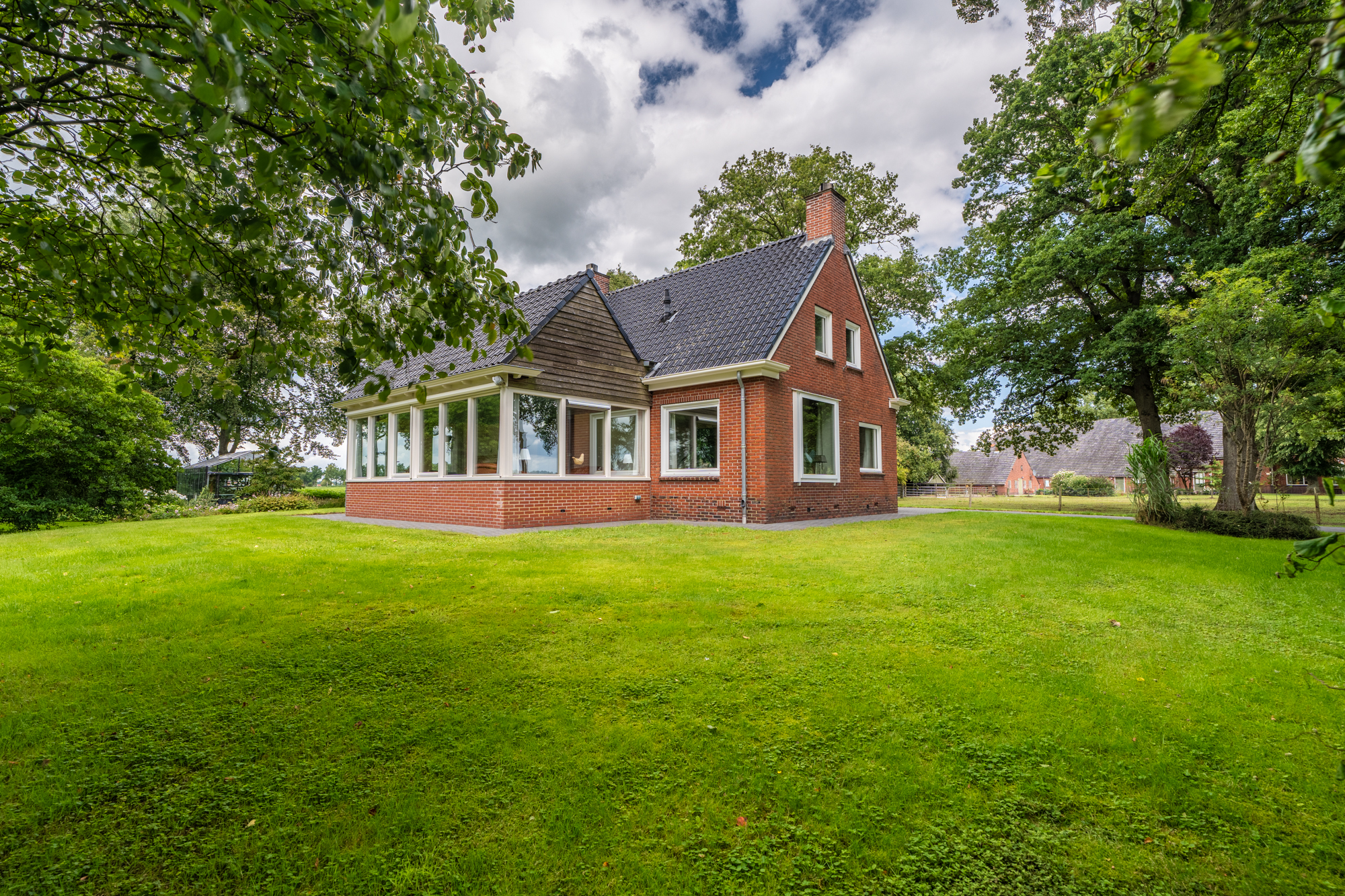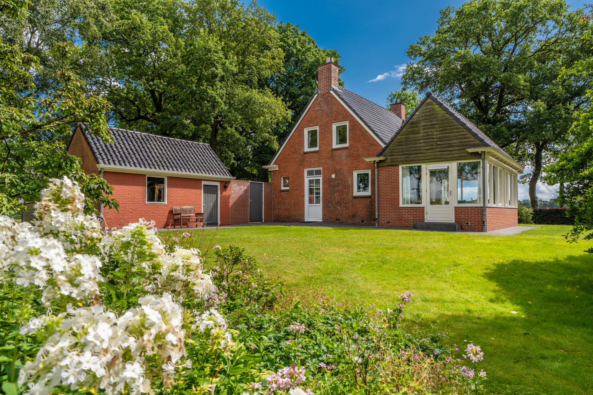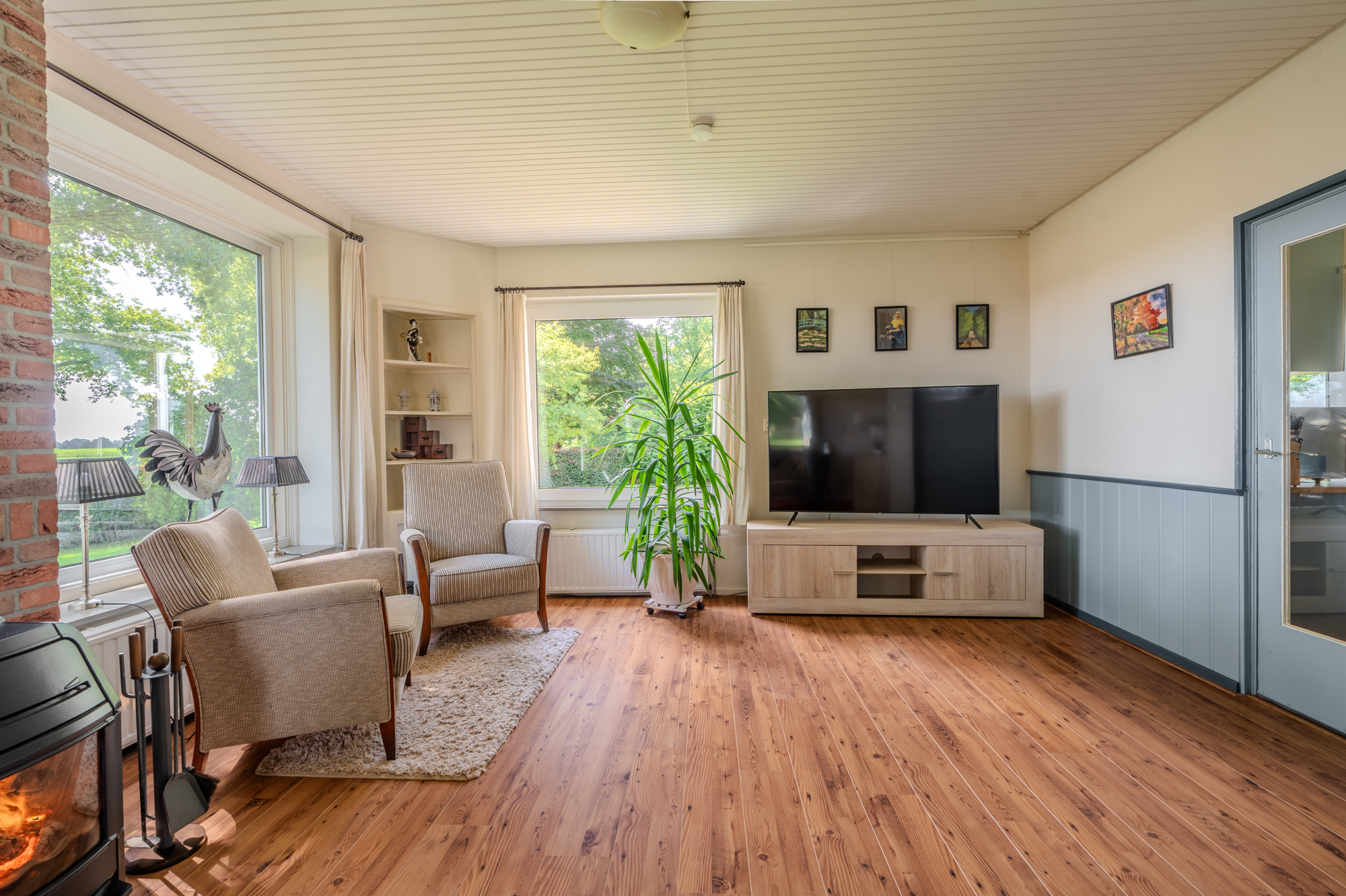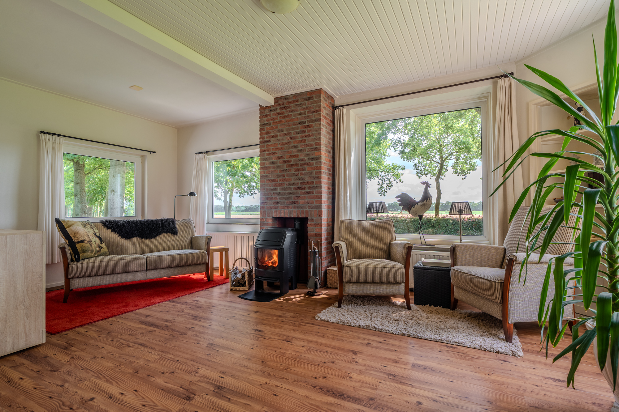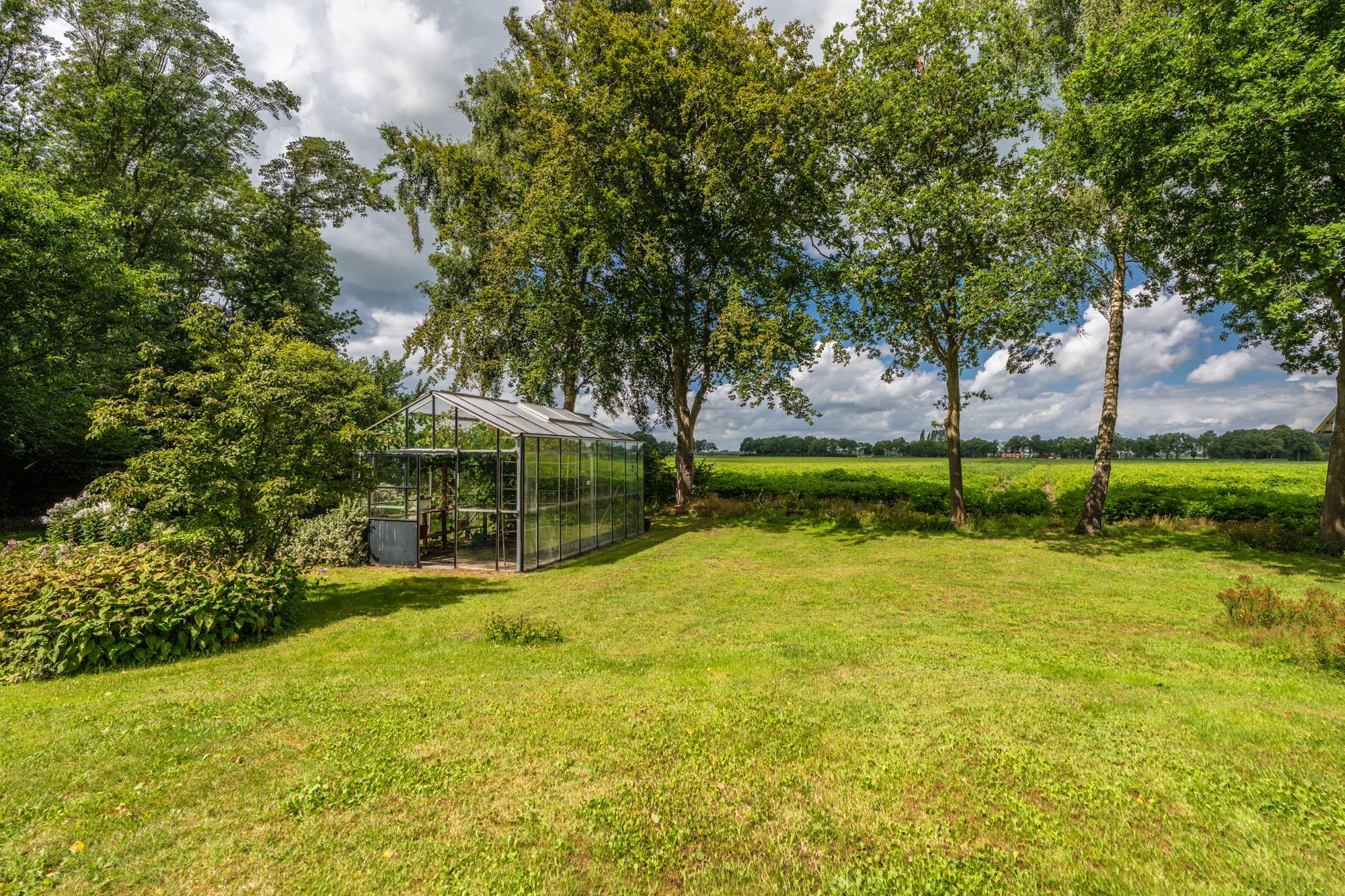 Indeling: hal met zij-entree en trapopgang; woonkamer (ca. 24.8m²) met fraai uitzicht op tegenover gelegen landerijen en een houtkachel; woonkeuken (ca. 11m²) v.v. inbouwkeuken met enige (losse) apparatuur (o.a. gasfornuis, afzuigkap en koelkast) en doorgang naar een aangebouwde serre/eetkamer (ca. 21.7m²) met openslaande tuindeur en een prachtig uitzicht op de tuin en een weids uitzicht over zowel de voor- als achter gelegen landerijen; voorraadkast en kelder (hoogte ca. 1.85m); bijkeuken met achter-entree en witgoedaansluitingen; badkamer met douche en badmeubel v.v. wastafel; toiletruimte. Verdieping: overloop; 2 slaapkamers (ca. 10.8m² en 9.4m²) beide met vaste kastruimte, de slaapkamer aan de voorzijde heeft een inloopkast (ca. 2m²); berging. Verdieping boven de aanbouw: van buitenaf bereikbare bergzolder.