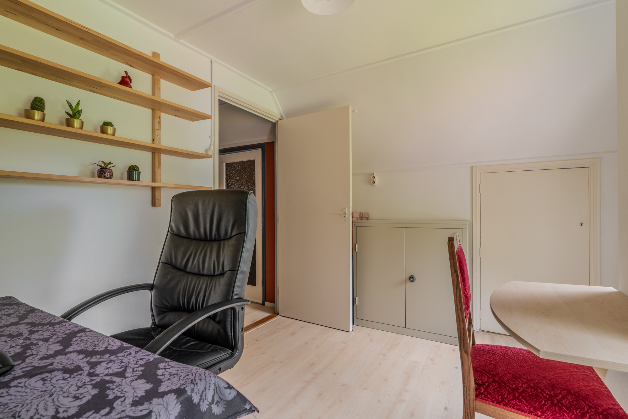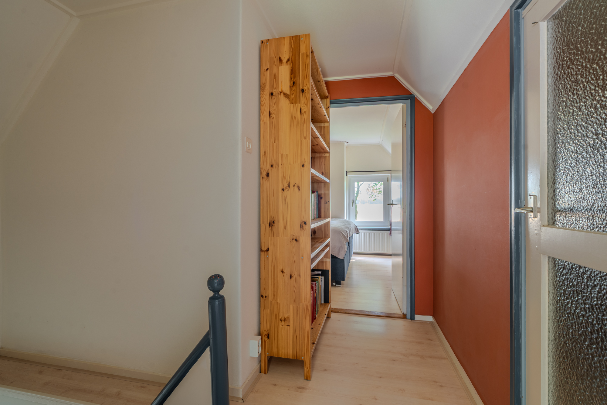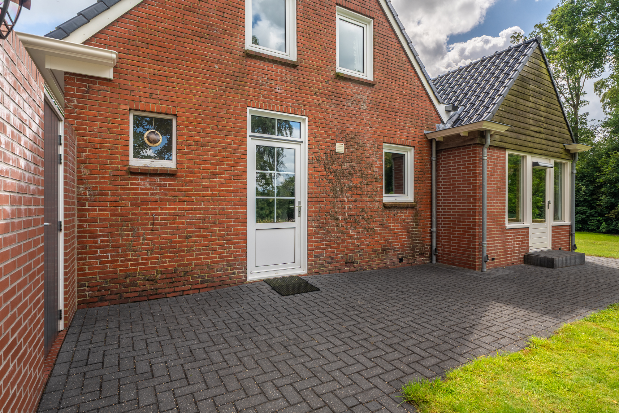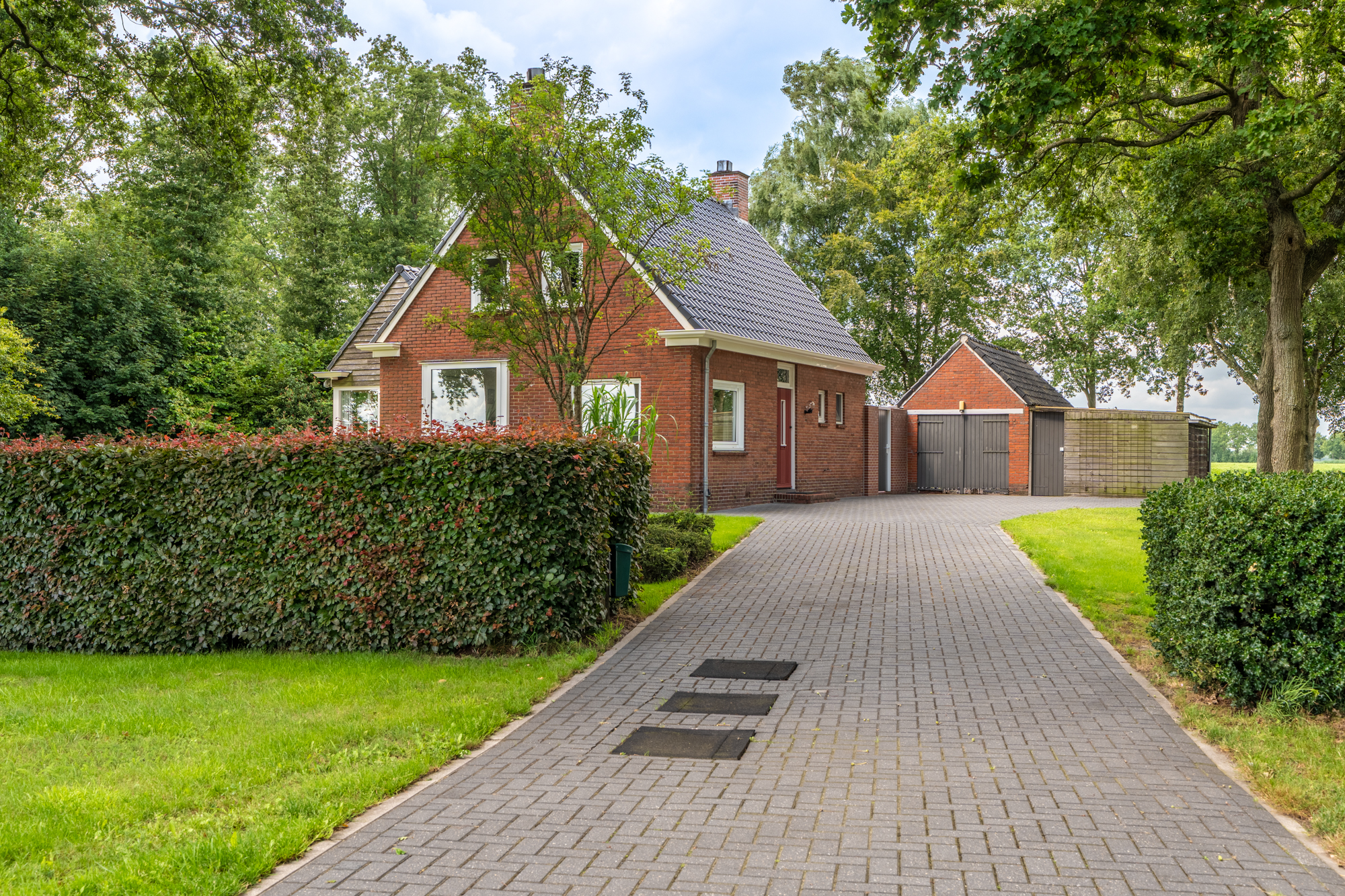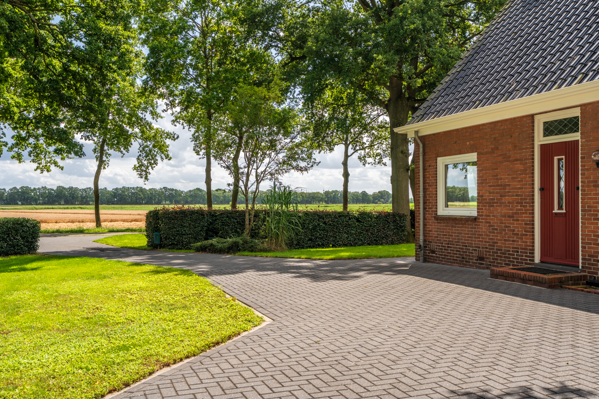 Indeling: hal met zij-entree en trapopgang; woonkamer (ca. 24.8m²) met fraai uitzicht op tegenover gelegen landerijen en een houtkachel; woonkeuken (ca. 11m²) v.v. inbouwkeuken met enige (losse) apparatuur (o.a. gasfornuis, afzuigkap en koelkast) en doorgang naar een aangebouwde serre/eetkamer (ca. 21.7m²) met openslaande tuindeur en een prachtig uitzicht op de tuin en een weids uitzicht over zowel de voor- als achter gelegen landerijen; voorraadkast en kelder (hoogte ca. 1.85m); bijkeuken met achter-entree en witgoedaansluitingen; badkamer met douche en badmeubel v.v. wastafel; toiletruimte. Verdieping: overloop; 2 slaapkamers (ca. 10.8m² en 9.4m²) beide met vaste kastruimte, de slaapkamer aan de voorzijde heeft een inloopkast (ca. 2m²); berging. Verdieping boven de aanbouw: van buitenaf bereikbare bergzolder.