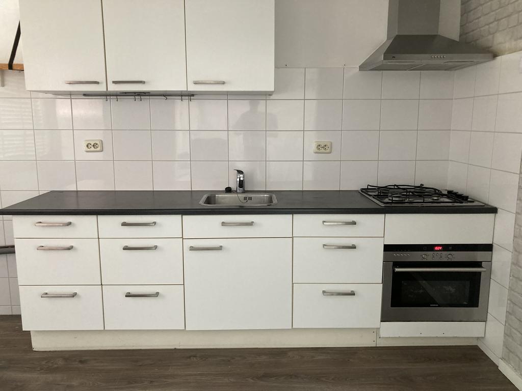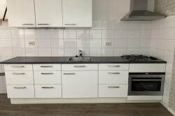 Indeling: hal / entree; toiletruimte met wandcloset; woonkamer met laminaatvloer en open keuken v.v. inbouwkeuken met enige apparatuur (gaskookplaat, afzuigkap en combi-magnetron) en achter-entree.