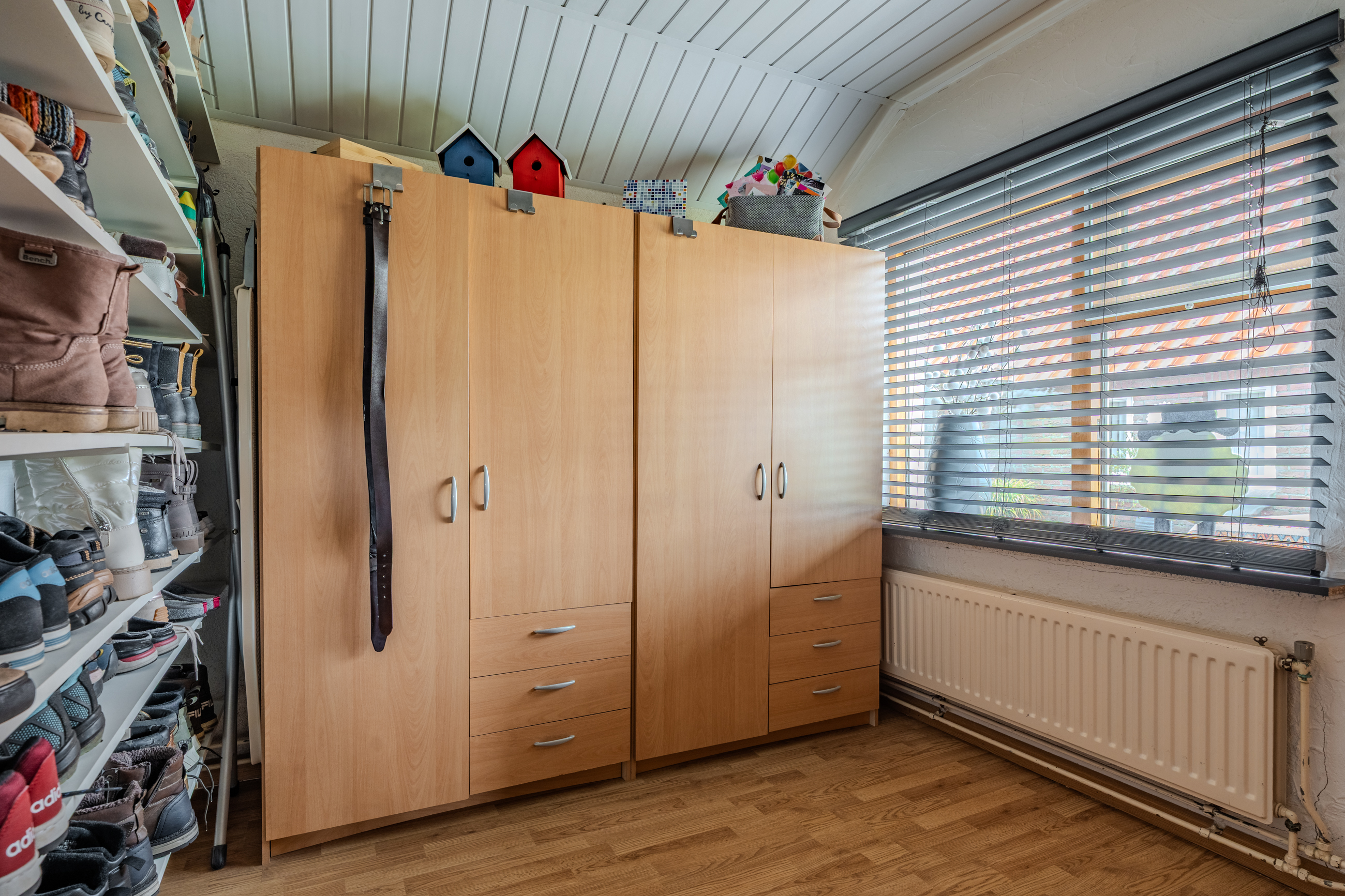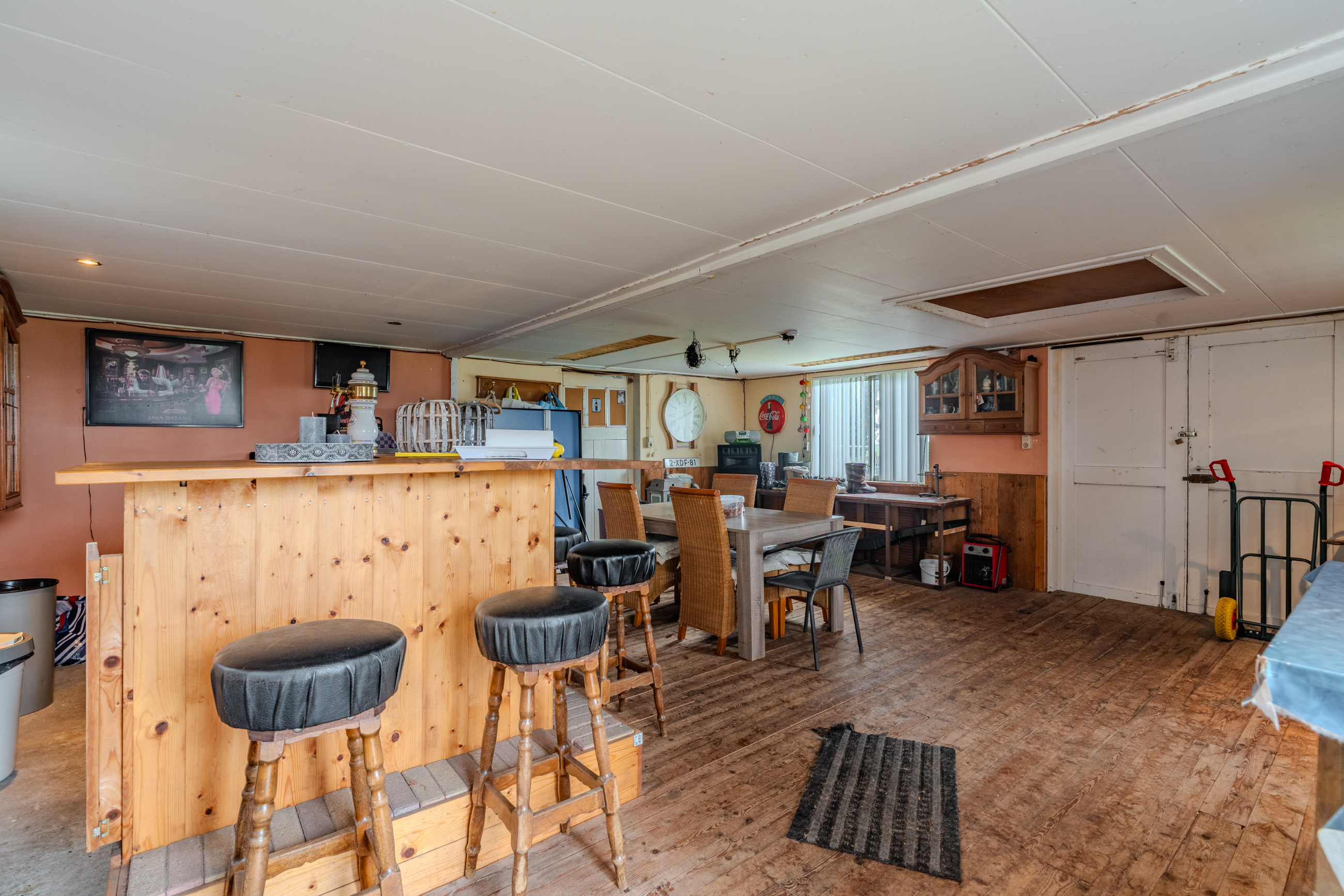 - de vrijstaande schuur-/garage is opgedeeld in een garage (ca. 20m²) en een schuur-/hobbyruimte (ca. 42m²) met een bar, openslaande deuren en bergzolder.
