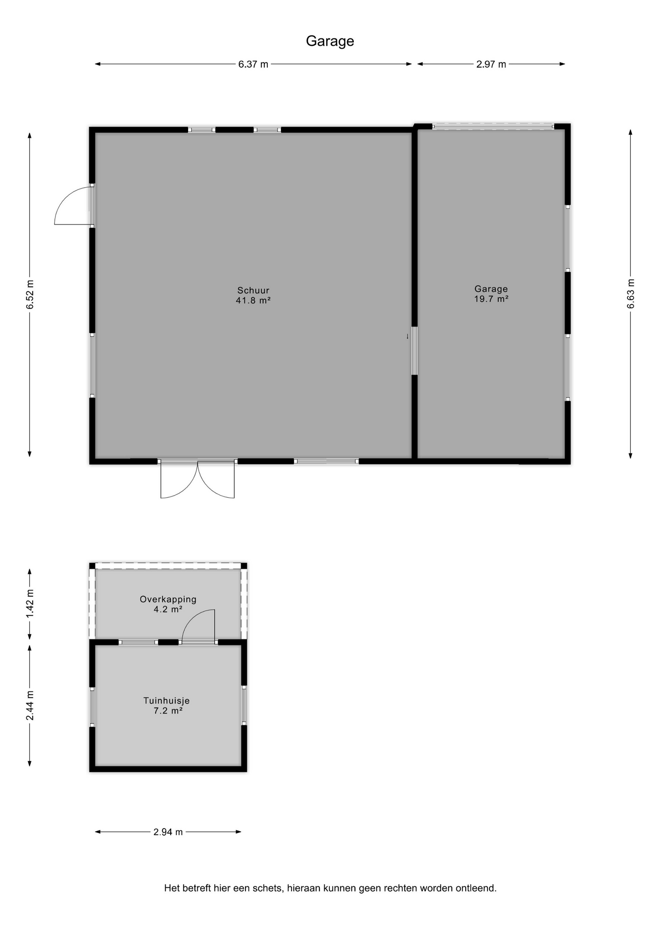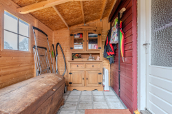 - naast de woning staat een houten tuinhuis (ca. 7.2m²) met een overkapping.