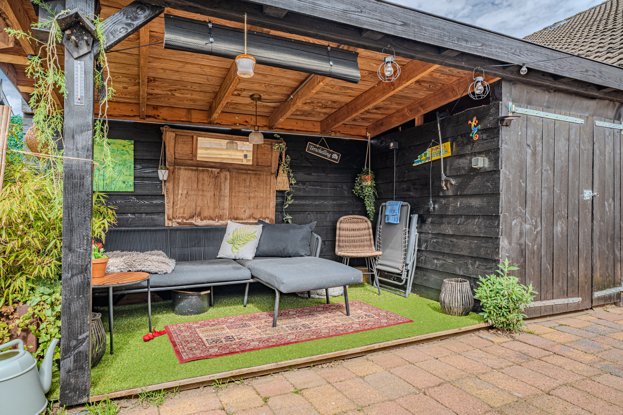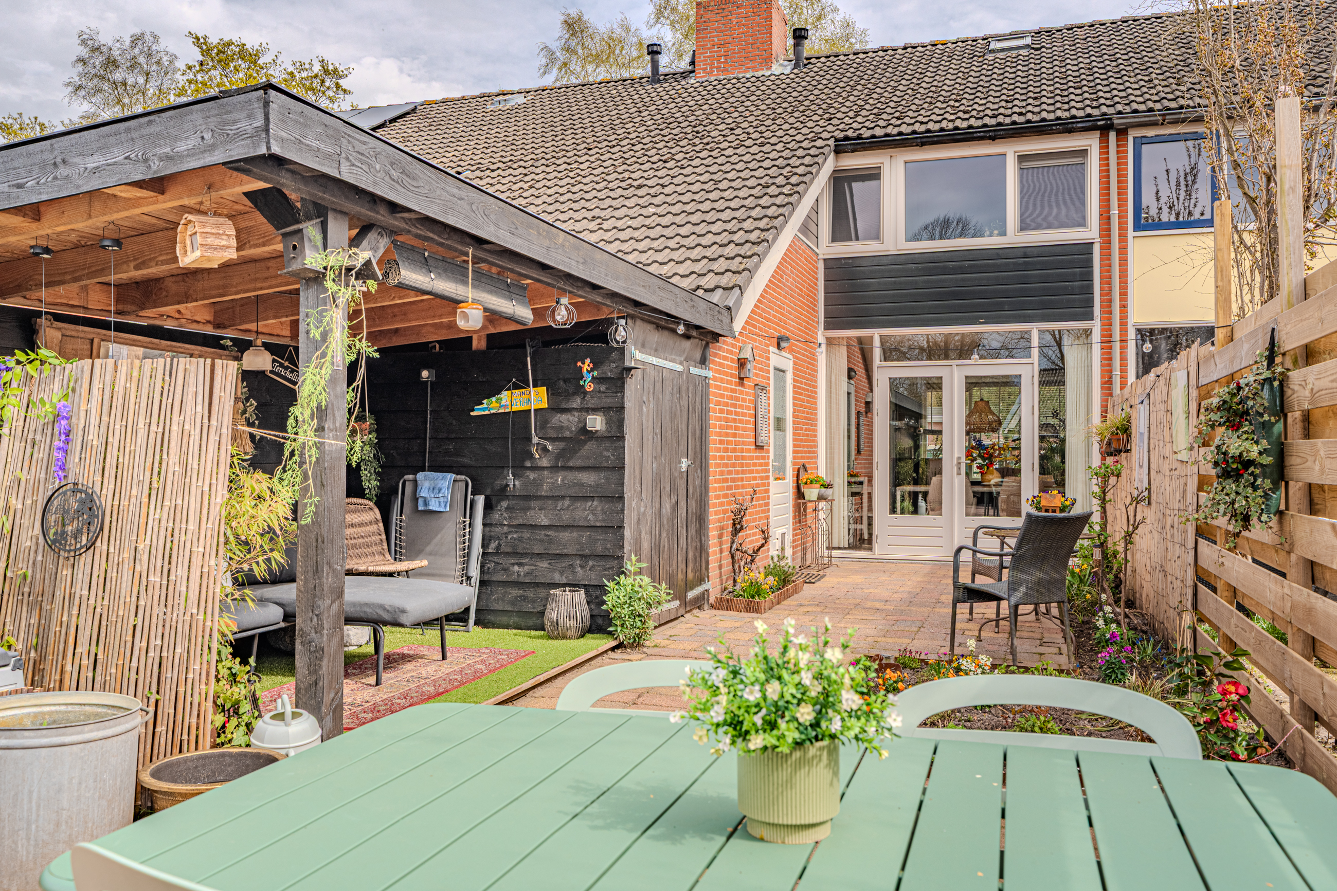 - aangebouwde overkapping met (fietsen)schuurtje is gerealiseerd in 2023.