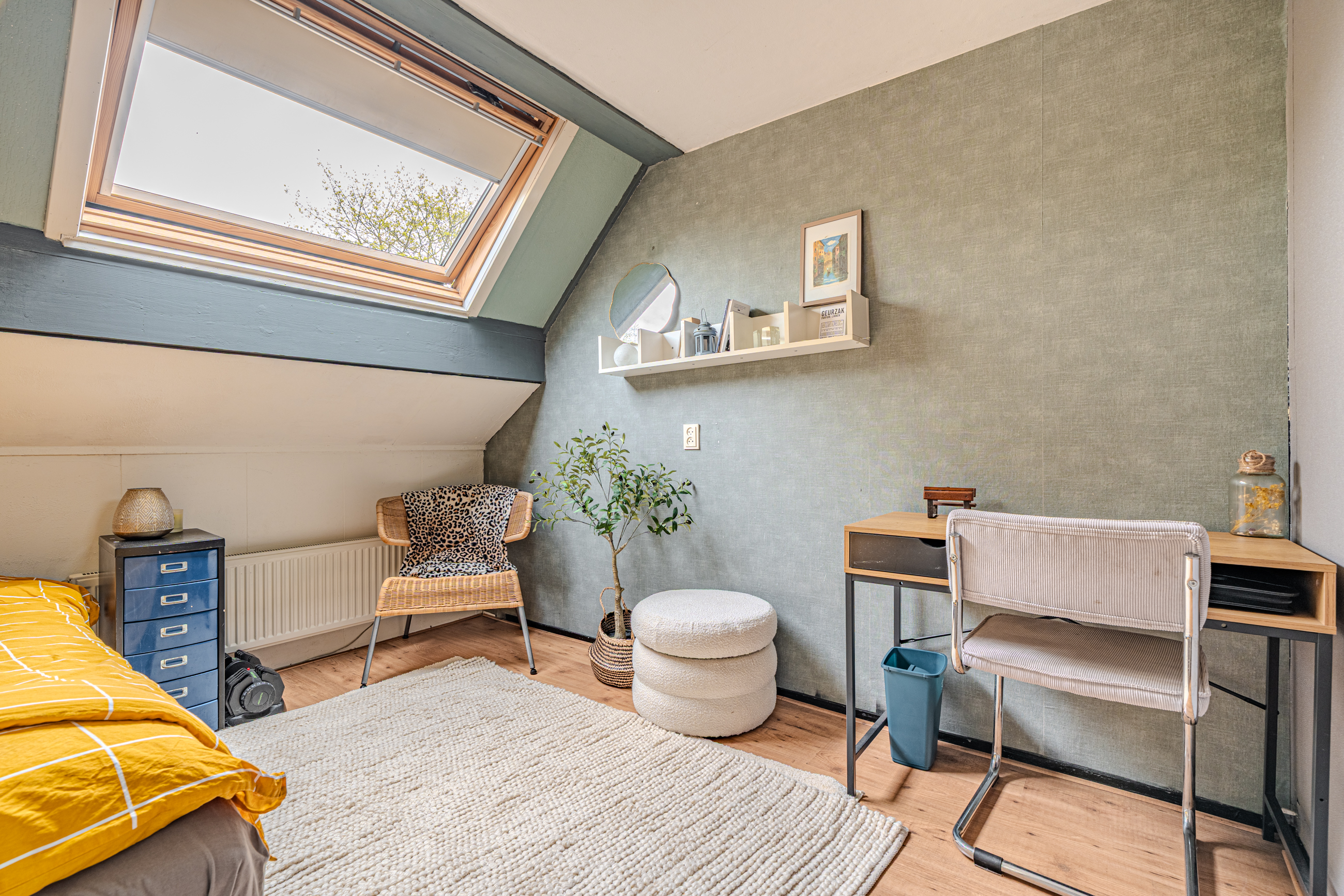 2e verdieping: middels vlizotrap bereikbare zolderberging met CV-opstelling en een dakraam.