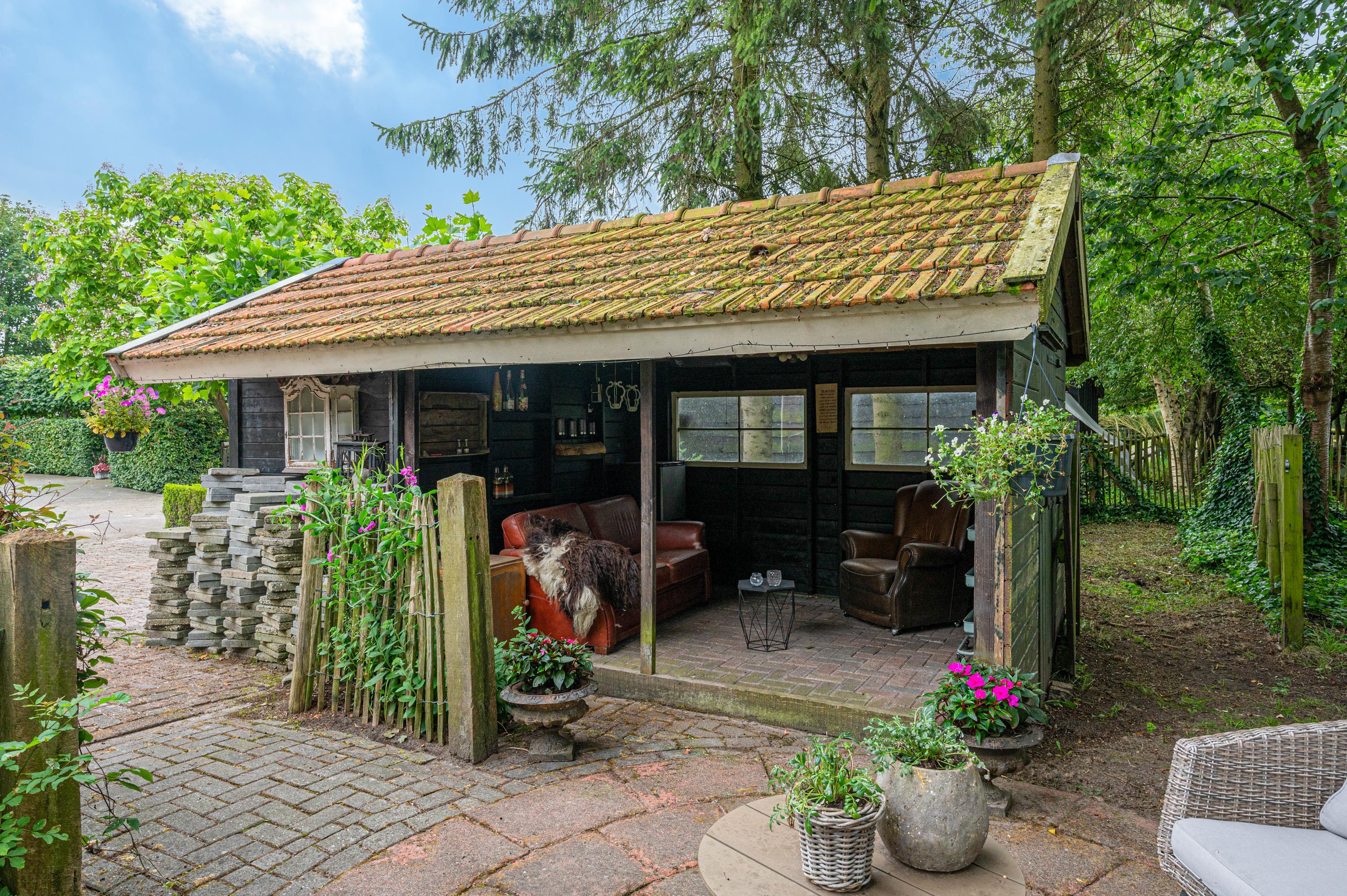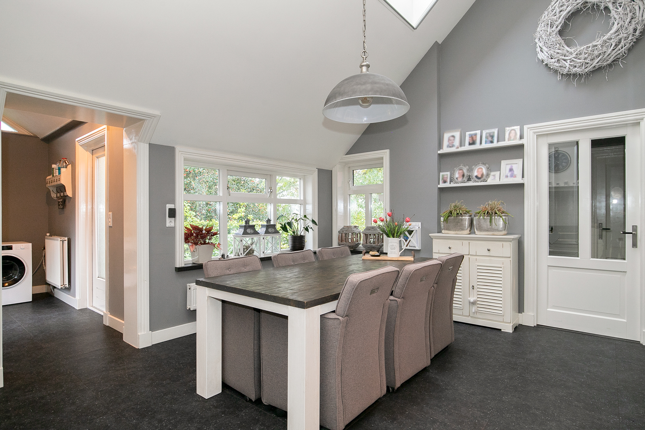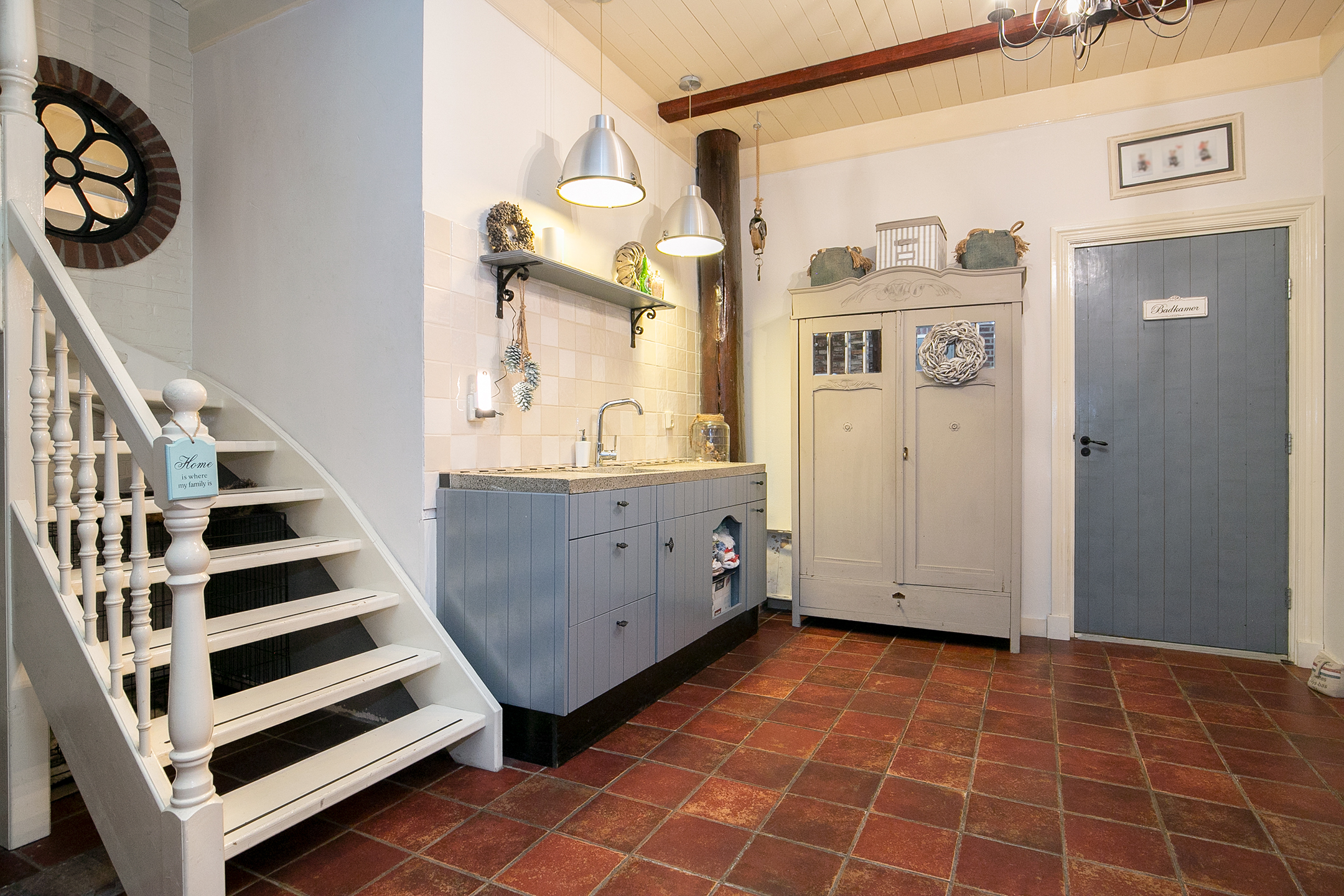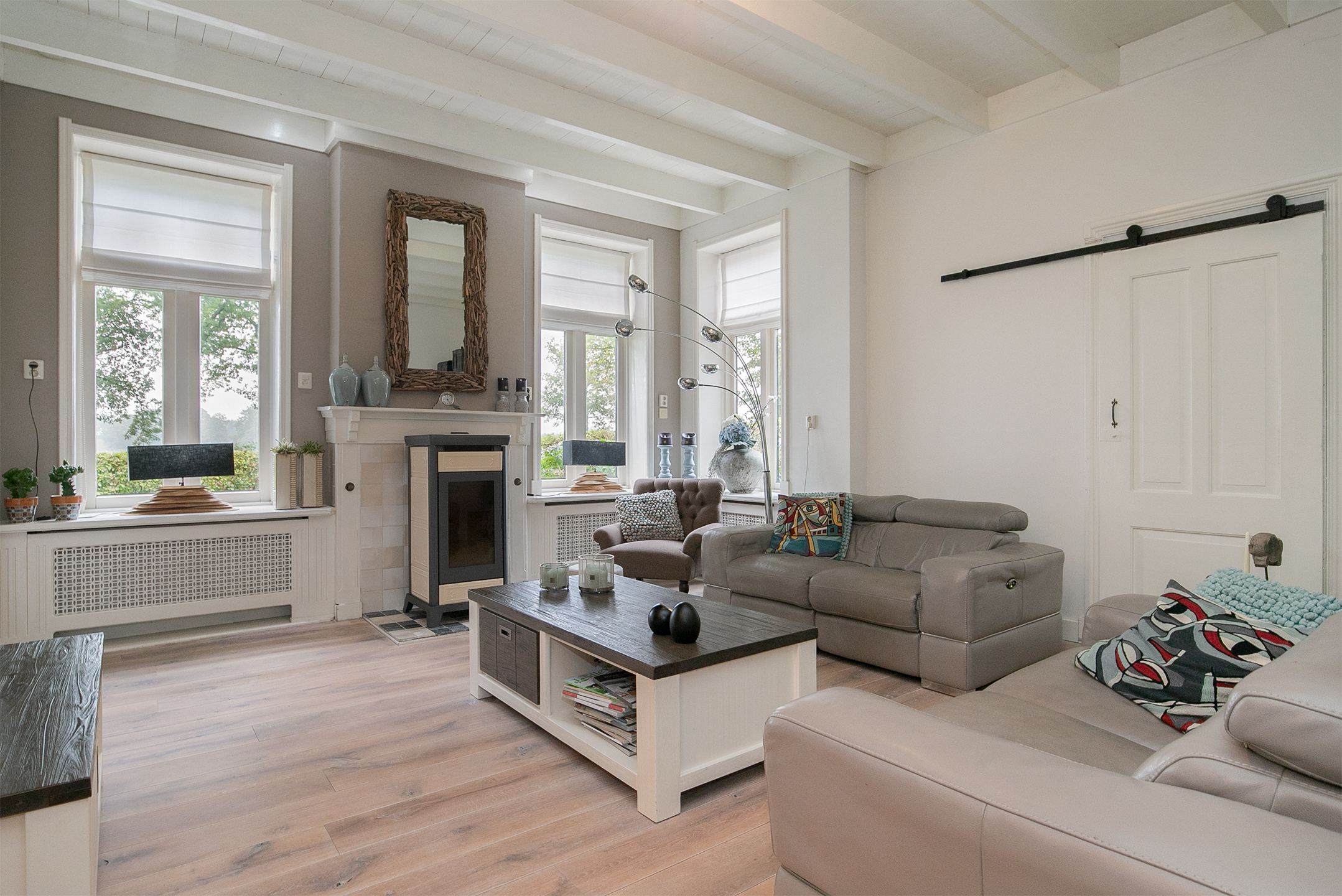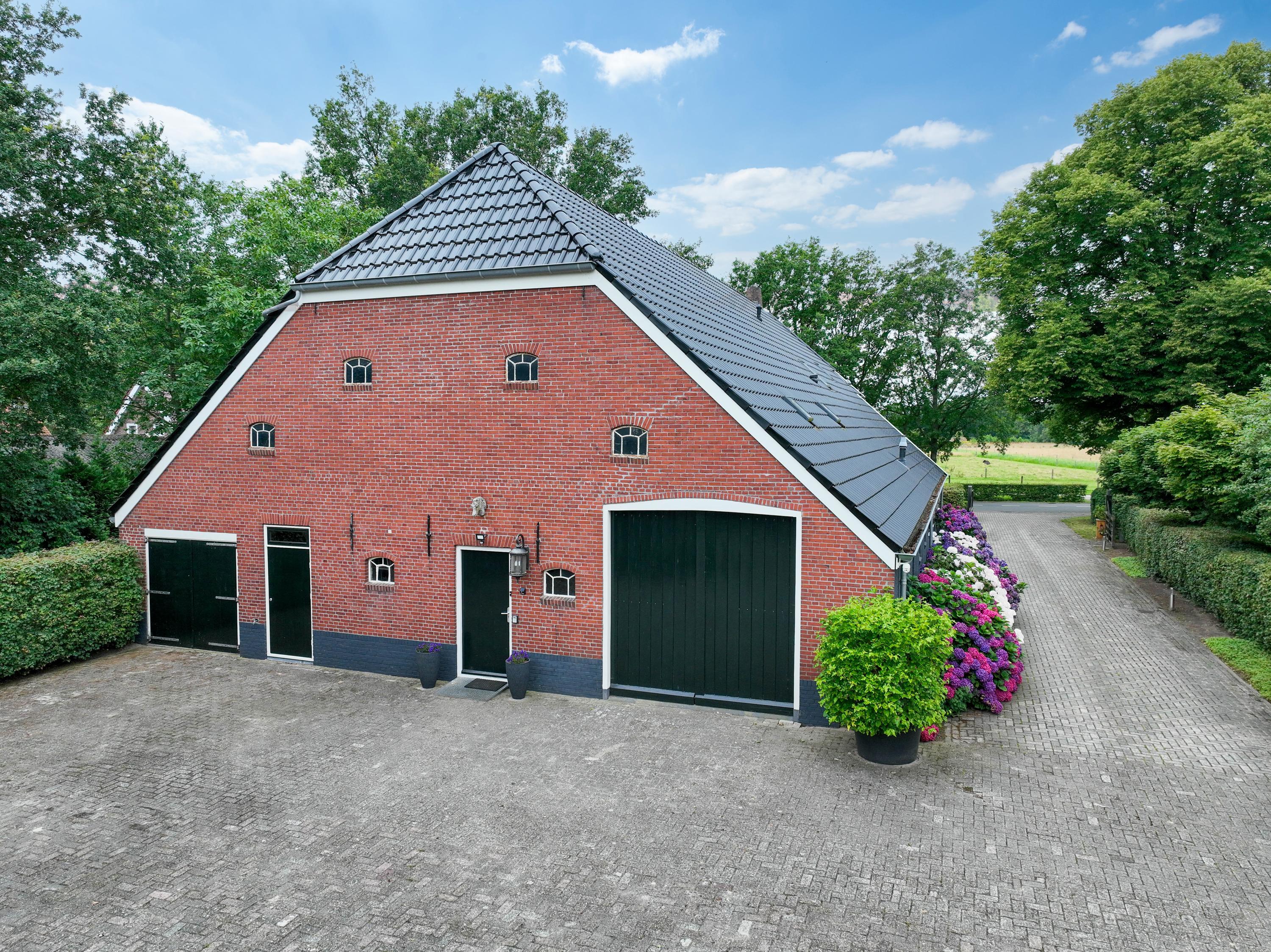 Indeling: hal met zij-entree en meterkast; werk-/slaapkamer (ca. 15.1m²) met opgang naar een kelder; sfeervolle woonkamer (ca. 29.3m²) met balkenplafond en schouw v.v. pelletkachel; woonkeuken (ca. 32.3m²) met een prachtige lichtinval door de hooggeplaatste dakramen, provisiekast en een luxe inbouwkeuken v.v. spoeleiland, natuurstenen blad en diverse apparatuur (gasfornuis met 2 ovens, bakplaat en warmhoudplaat, afzuigkap in schouw, vaatwasser, combi-magnetron en koffieautomaat); bijkeuken (voormalig stookhuisje) met witgoedaansluitingen, 2e entree en een deur naar het terras; ruime centrale achterhal met een 2e keukenblok, trapopgang en doorgang naar de inpandige deel; toiletruimte met wandcloset en fonteintje; ouderslaapkamer (ca. 22.5m²) met een ruime inloop(kleding)kast (ca. 3.2m²) en doorgang naar de badkamer met een inloopdouche, badmeubel met wastafel, ligbad en toilet (wandcloset); inpandige deel-/schuurruimte (ca. 166m²) met een technische ruimte v.v. de CV opstelling en een extra witgoedaansluiting en 3 ruime paardenboxen.