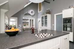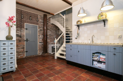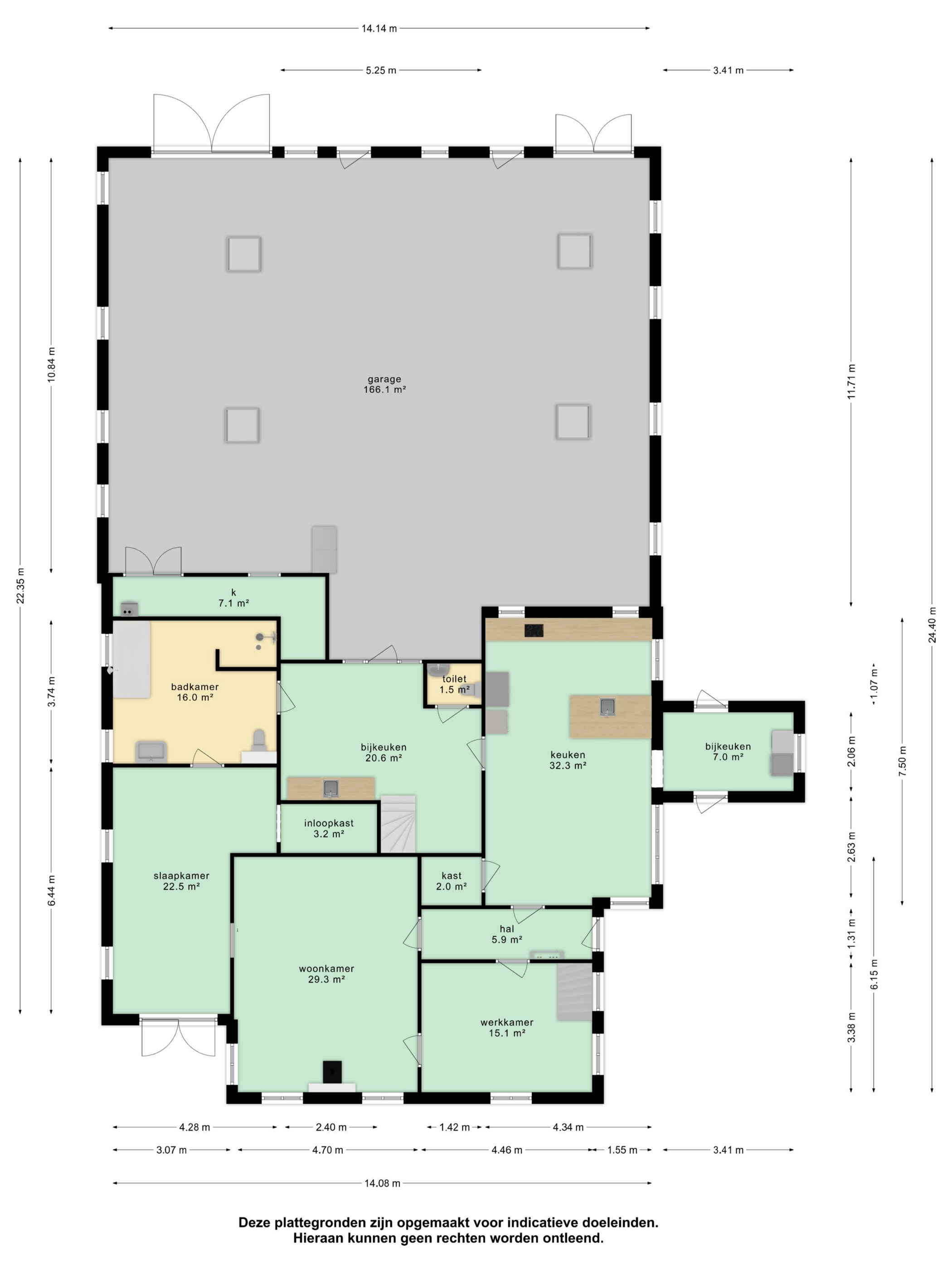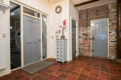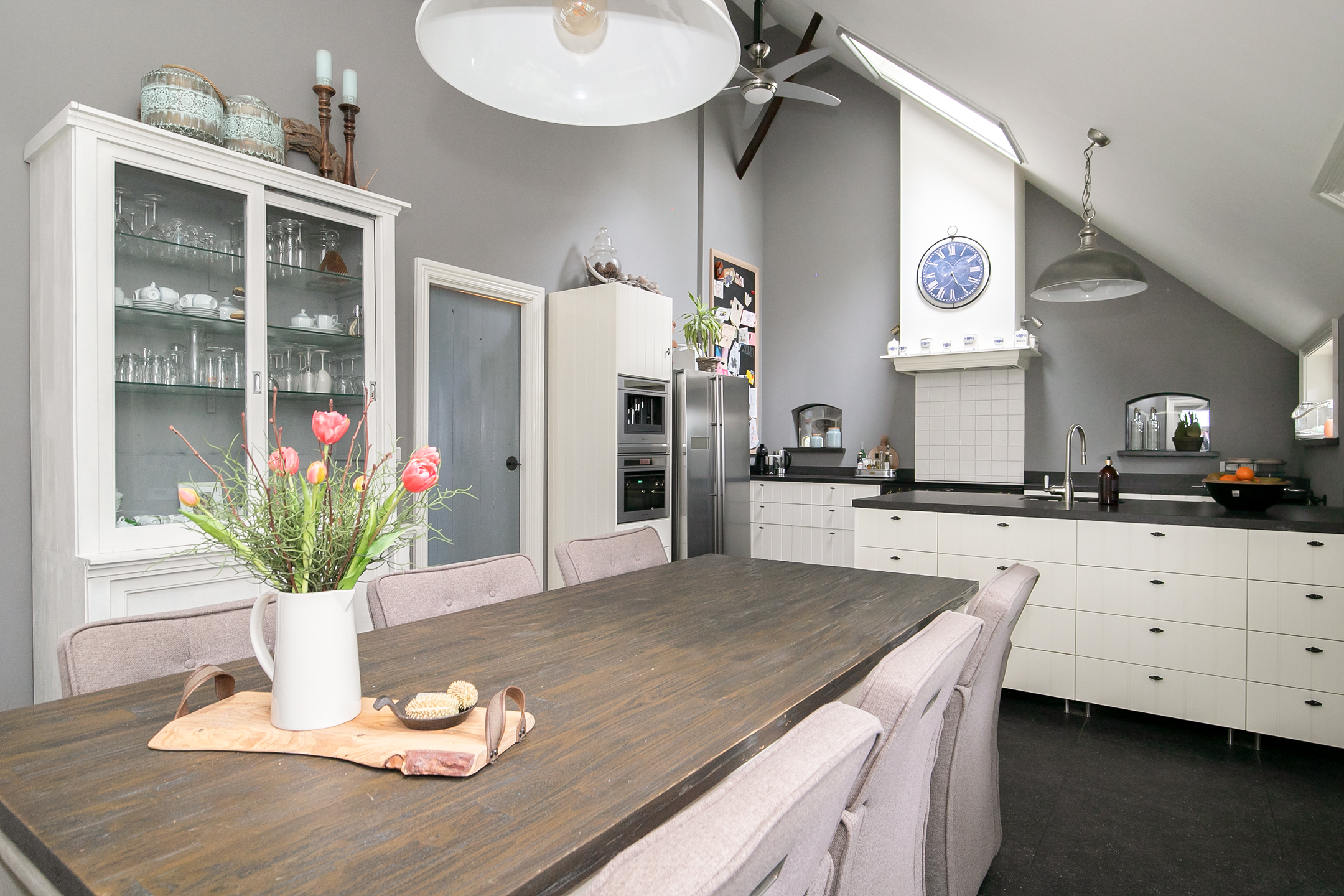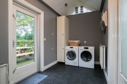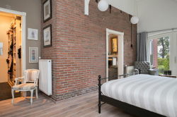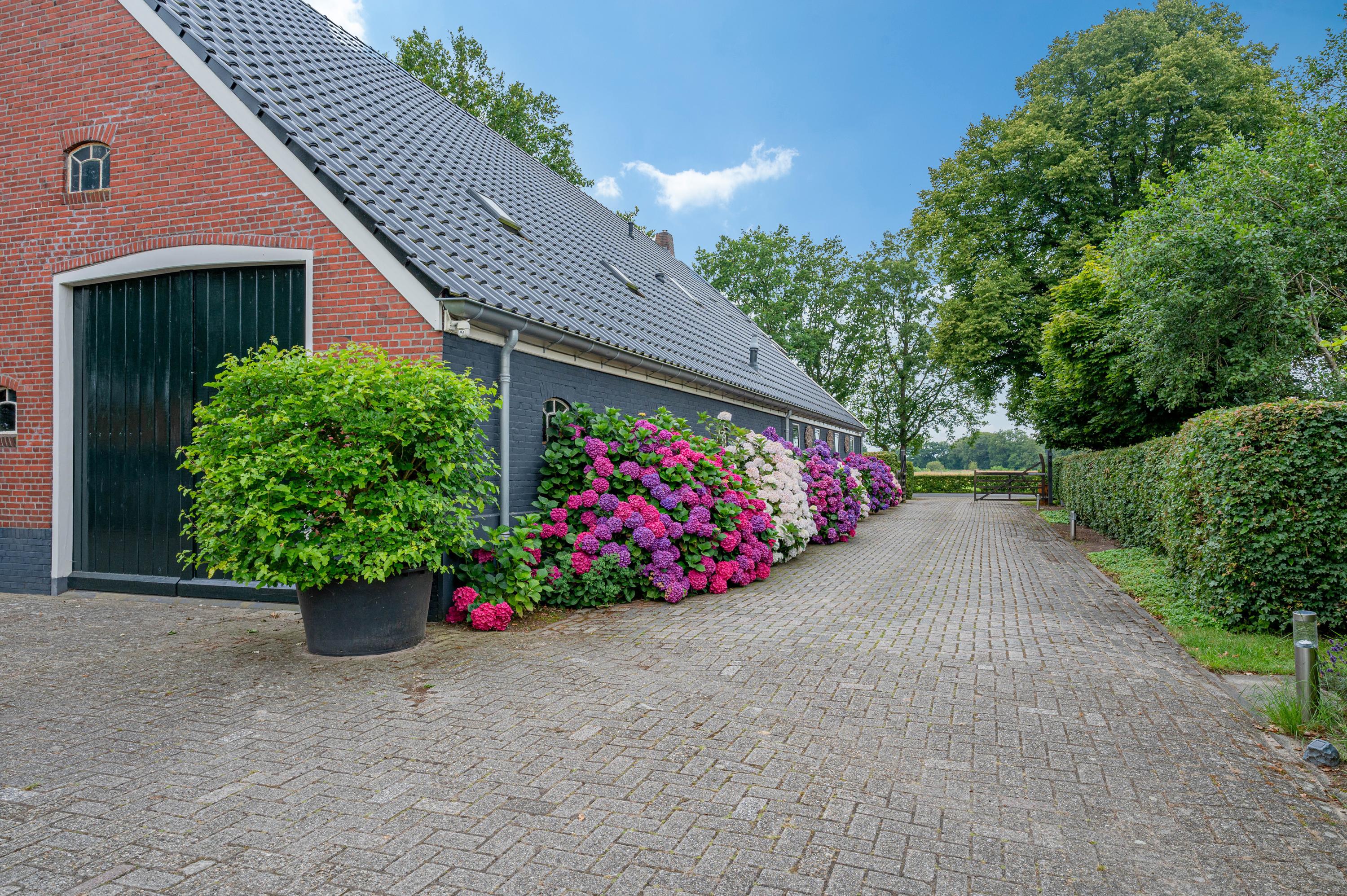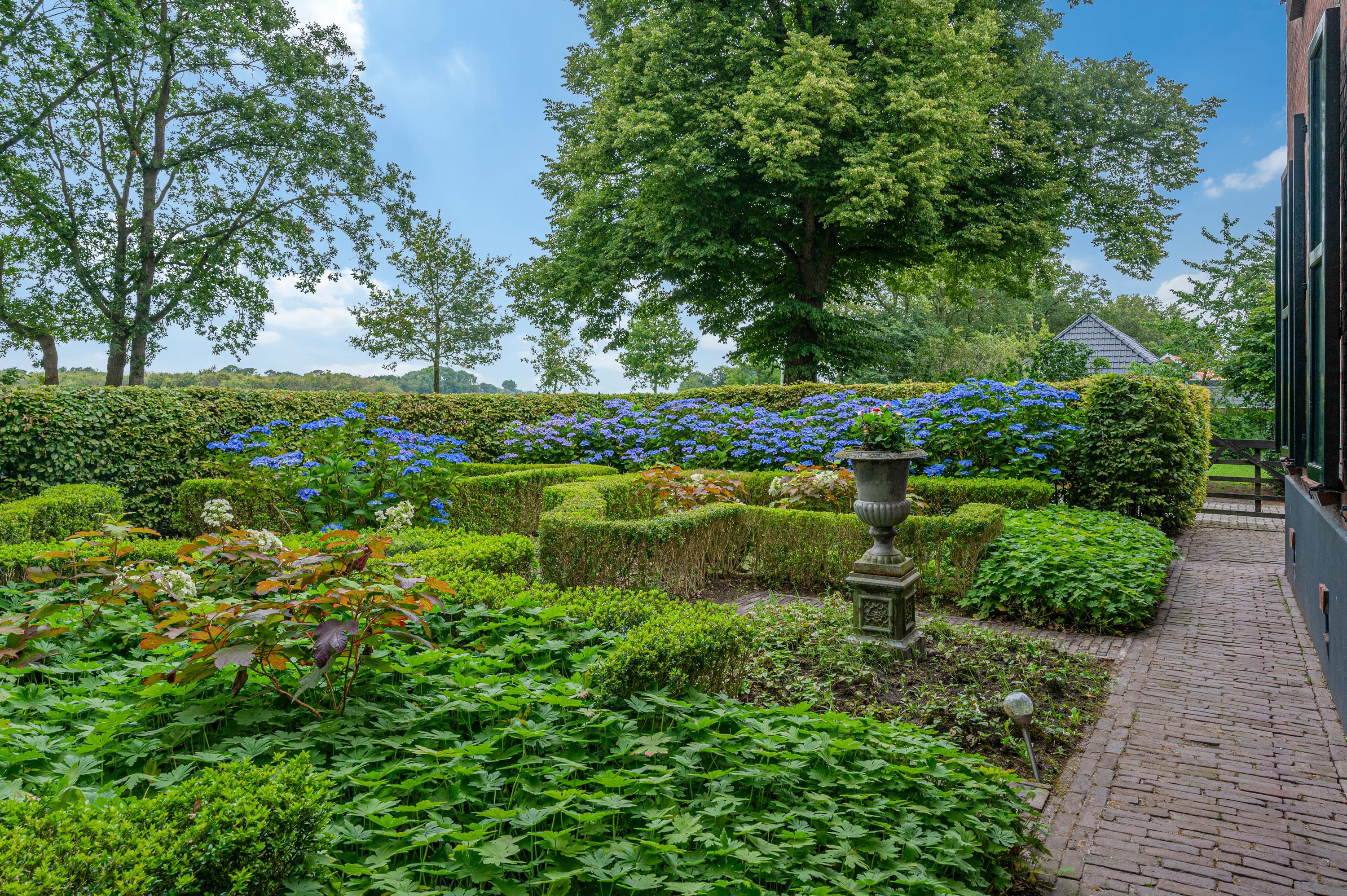 Indeling: hal met zij-entree en meterkast; werk-/slaapkamer (ca. 15.1m²) met opgang naar een kelder; sfeervolle woonkamer (ca. 29.3m²) met balkenplafond en schouw v.v. pelletkachel; woonkeuken (ca. 32.3m²) met een prachtige lichtinval door de hooggeplaatste dakramen, provisiekast en een luxe inbouwkeuken v.v. spoeleiland, natuurstenen blad en diverse apparatuur (gasfornuis met 2 ovens, bakplaat en warmhoudplaat, afzuigkap in schouw, vaatwasser, combi-magnetron en koffieautomaat); bijkeuken (voormalig stookhuisje) met witgoedaansluitingen, 2e entree en een deur naar het terras; ruime centrale achterhal met een 2e keukenblok, trapopgang en doorgang naar de inpandige deel; toiletruimte met wandcloset en fonteintje; ouderslaapkamer (ca. 22.5m²) met een ruime inloop(kleding)kast (ca. 3.2m²) en doorgang naar de badkamer met een inloopdouche, badmeubel met wastafel, ligbad en toilet (wandcloset); inpandige deel-/schuurruimte (ca. 166m²) met een technische ruimte v.v. de CV opstelling en een extra witgoedaansluiting en 3 ruime paardenboxen.