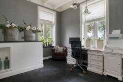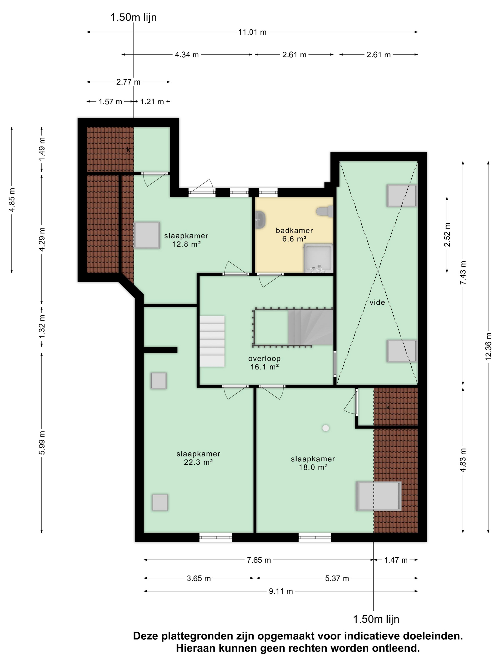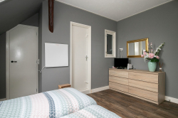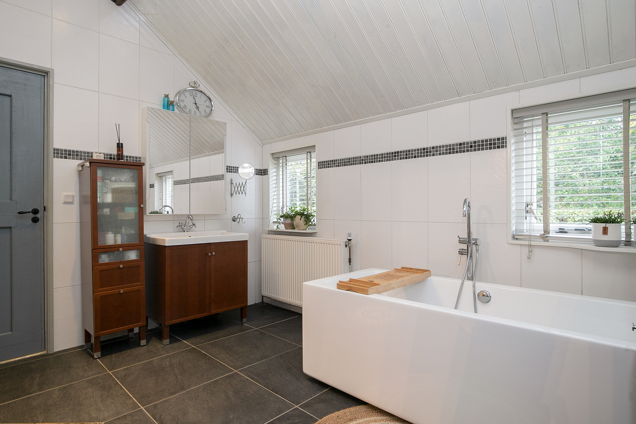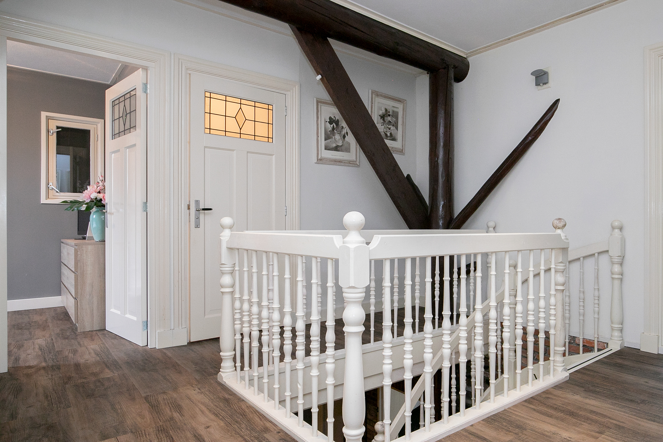 Verdieping: overloop met vide en een fraaie doorkijk naar de woonkeuken; slaapkamer (ca. 18m²) met een vaste kast; slaapkamer (ca. 22.3m²) met een inloopkast; slaapkamer (ca. 12.8m²) met een vaste kast; 2e badkamer (ca. 6.6m²) met een douchecabine, badmeubel v.v. wastafel en een toilet (wandcloset).
