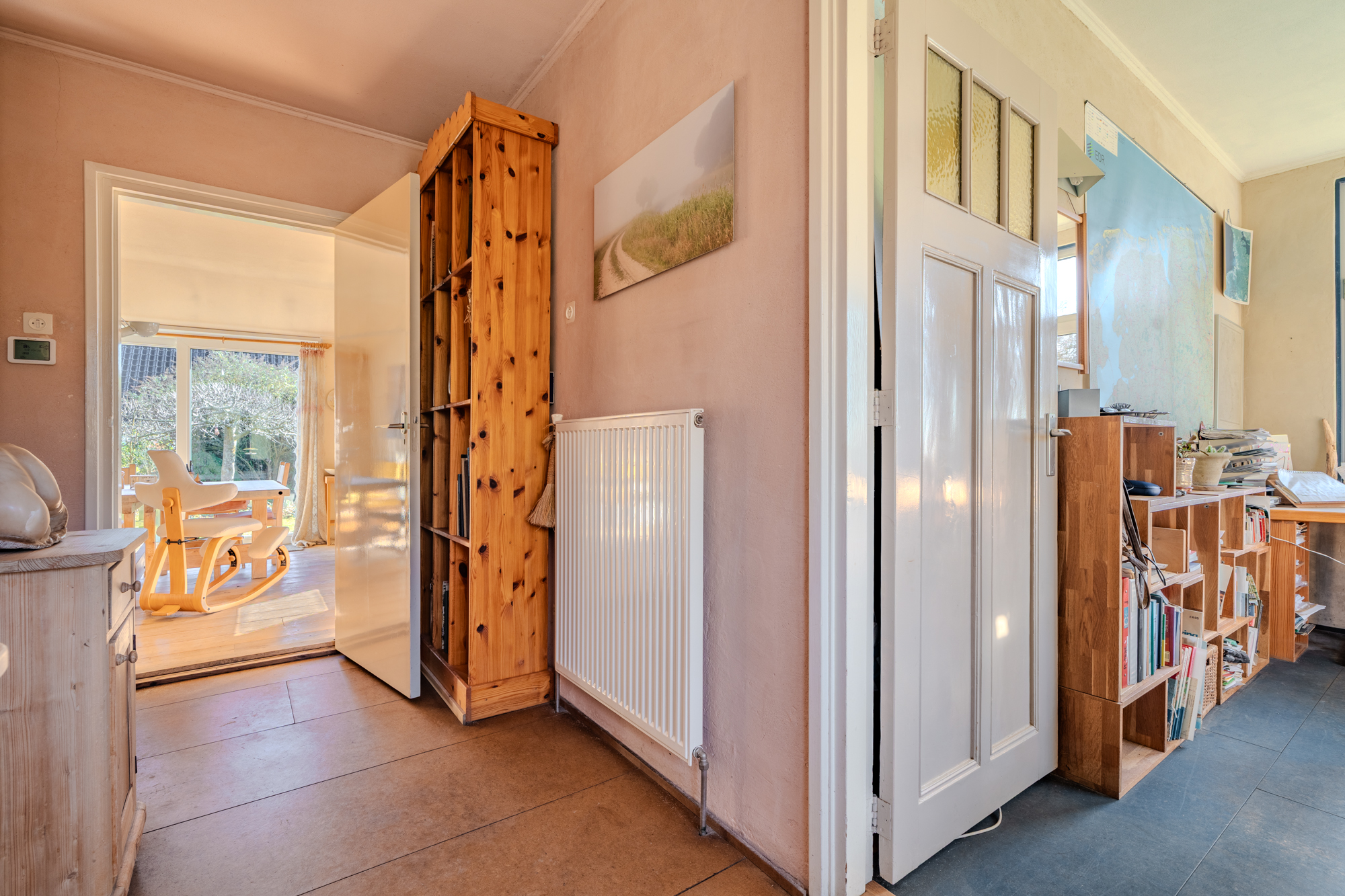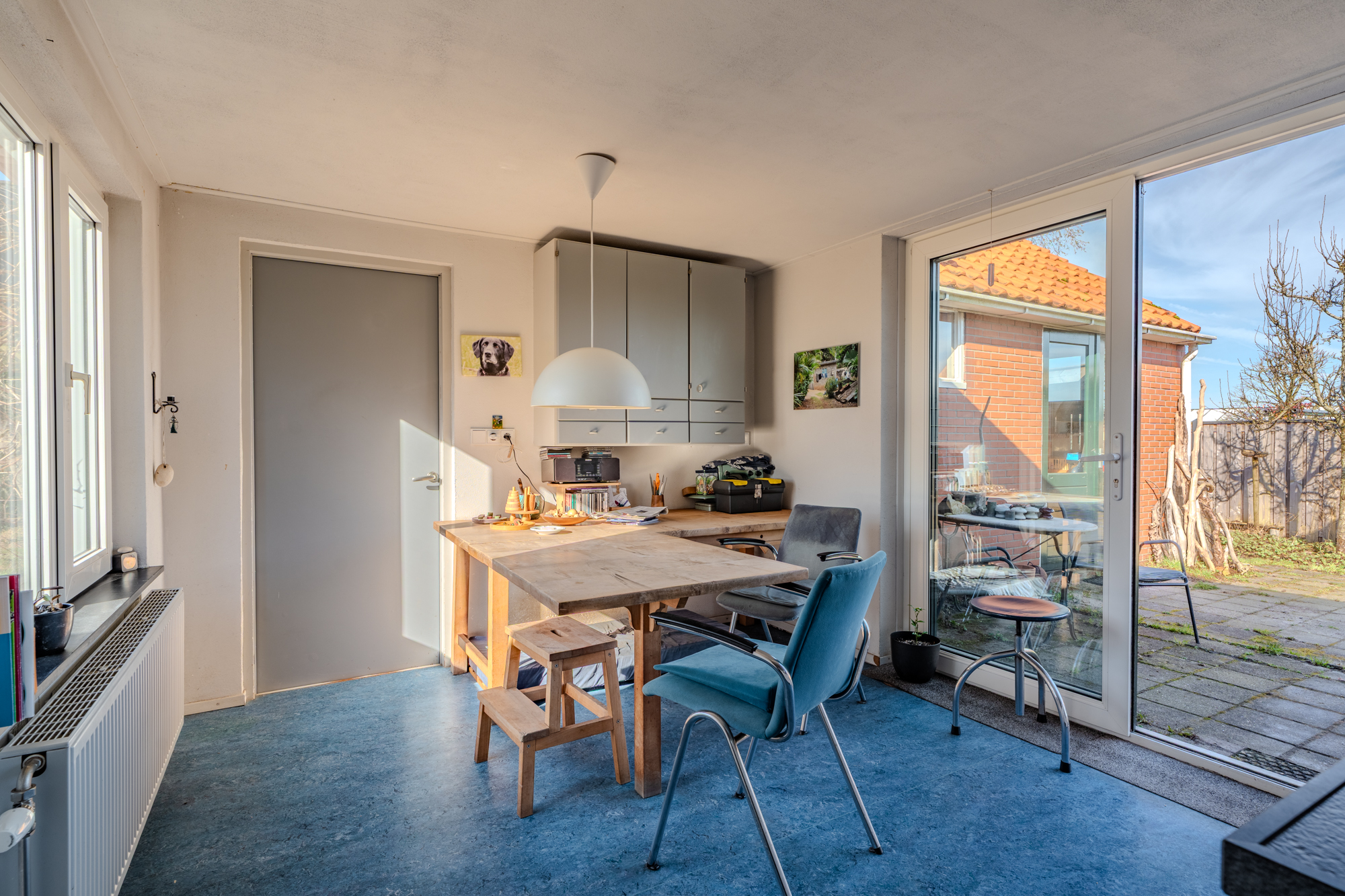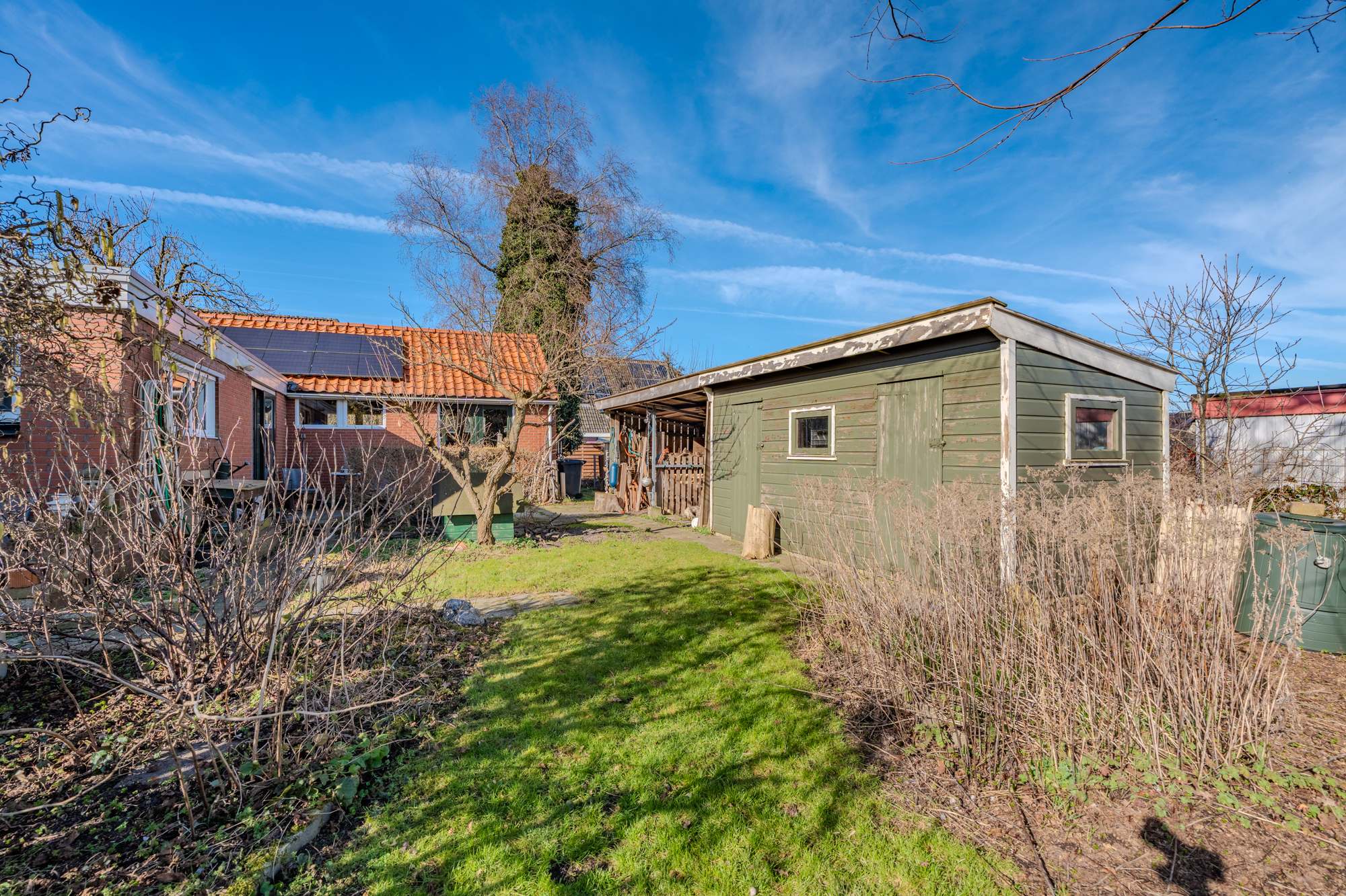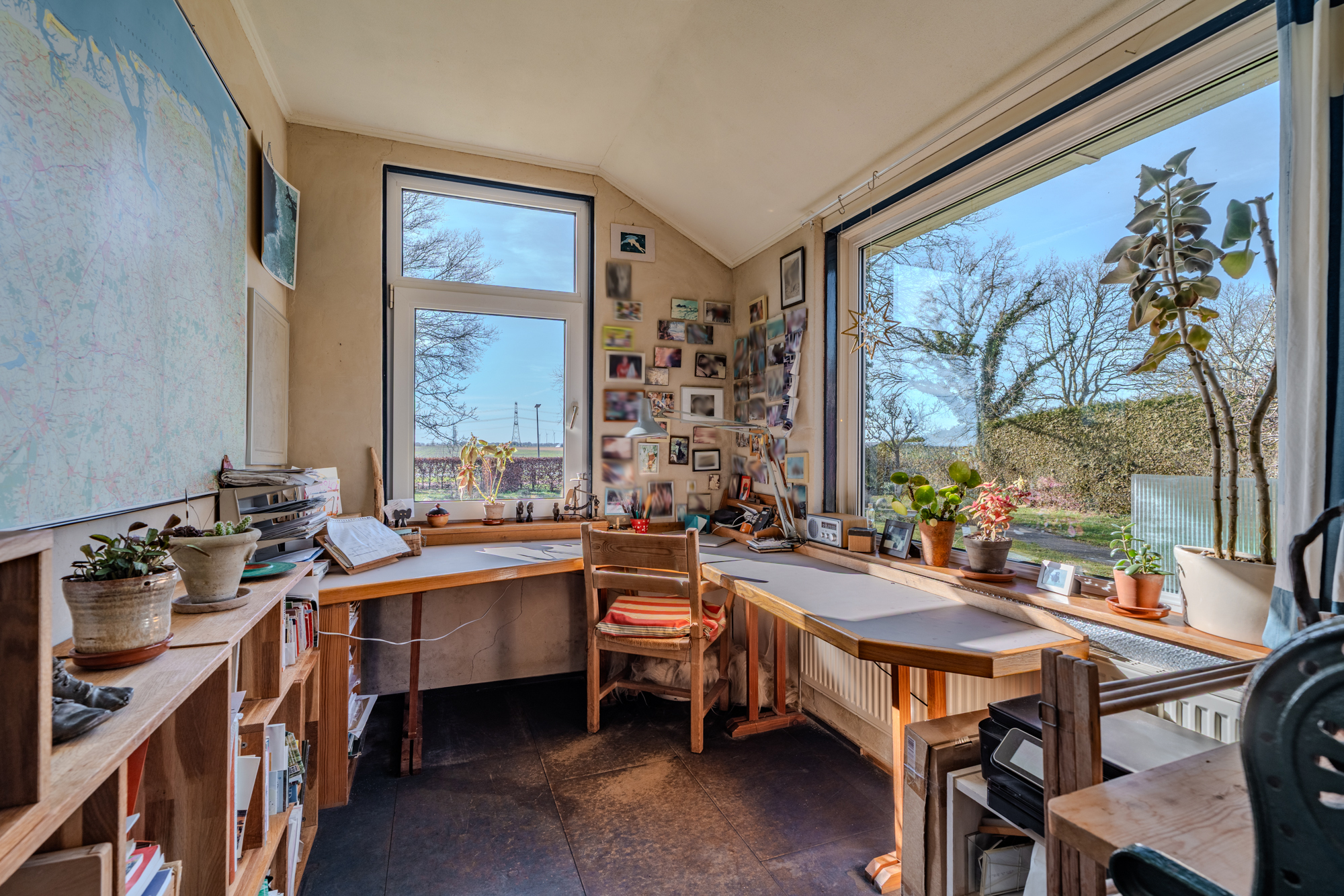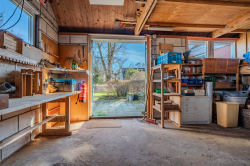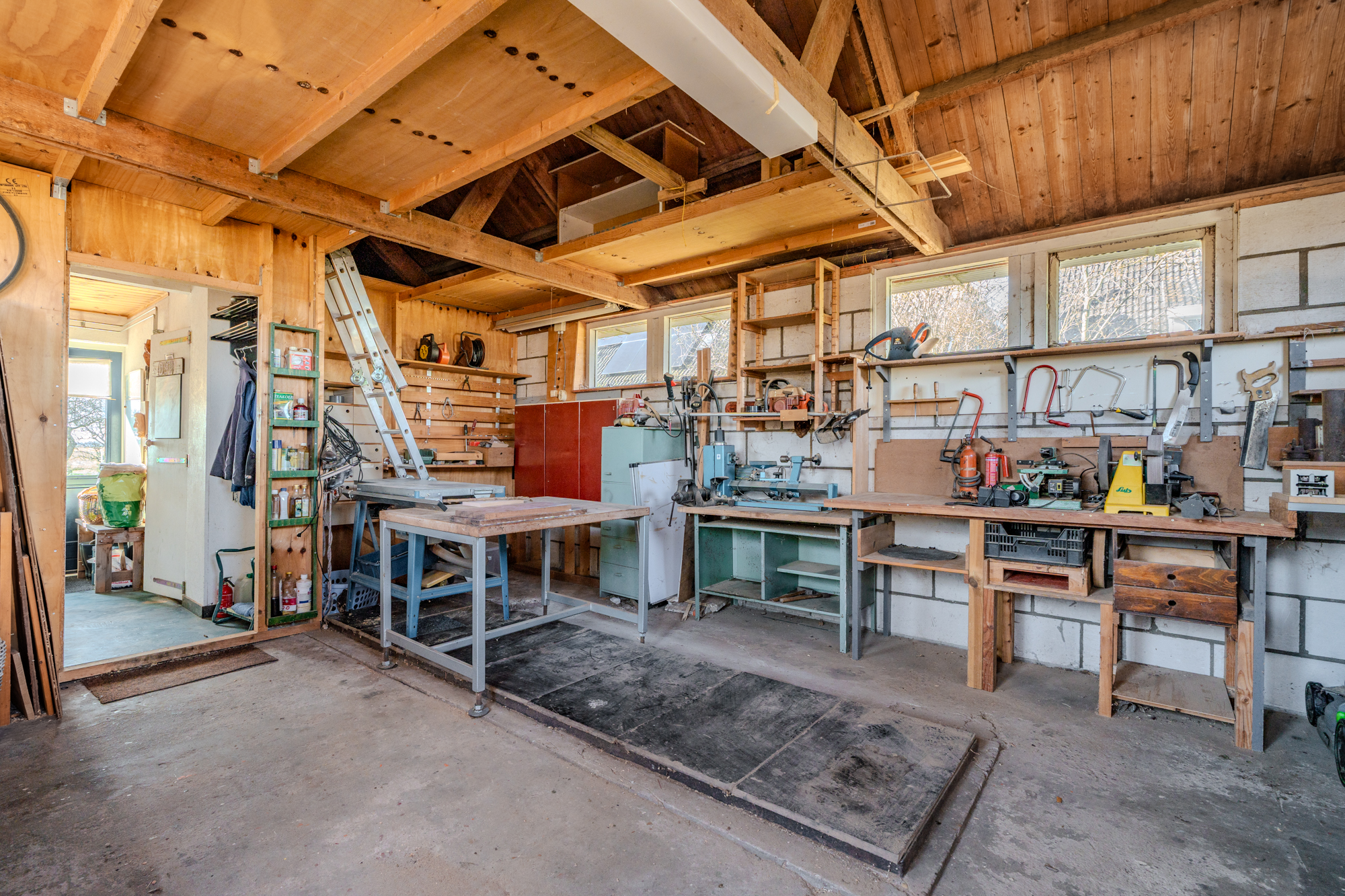 - de voormalige garage is verbouwd tot een werkplaats met kantoorruimte en beschikt over een eigen ingang, kantoor en een diepe droge smeerkelder (bijvoorbeeld ideaal te gebruiken als technische ruimte voor een warmtepomp, boiler(s), accu's etc.), afmeting ongeveer 3,50m lang, 0,80m breed en 1,50m diep.