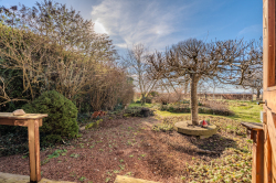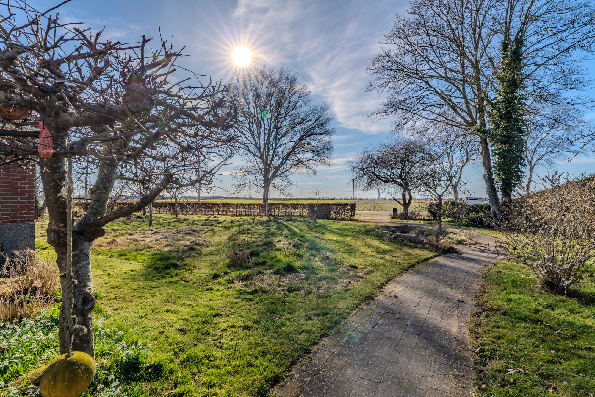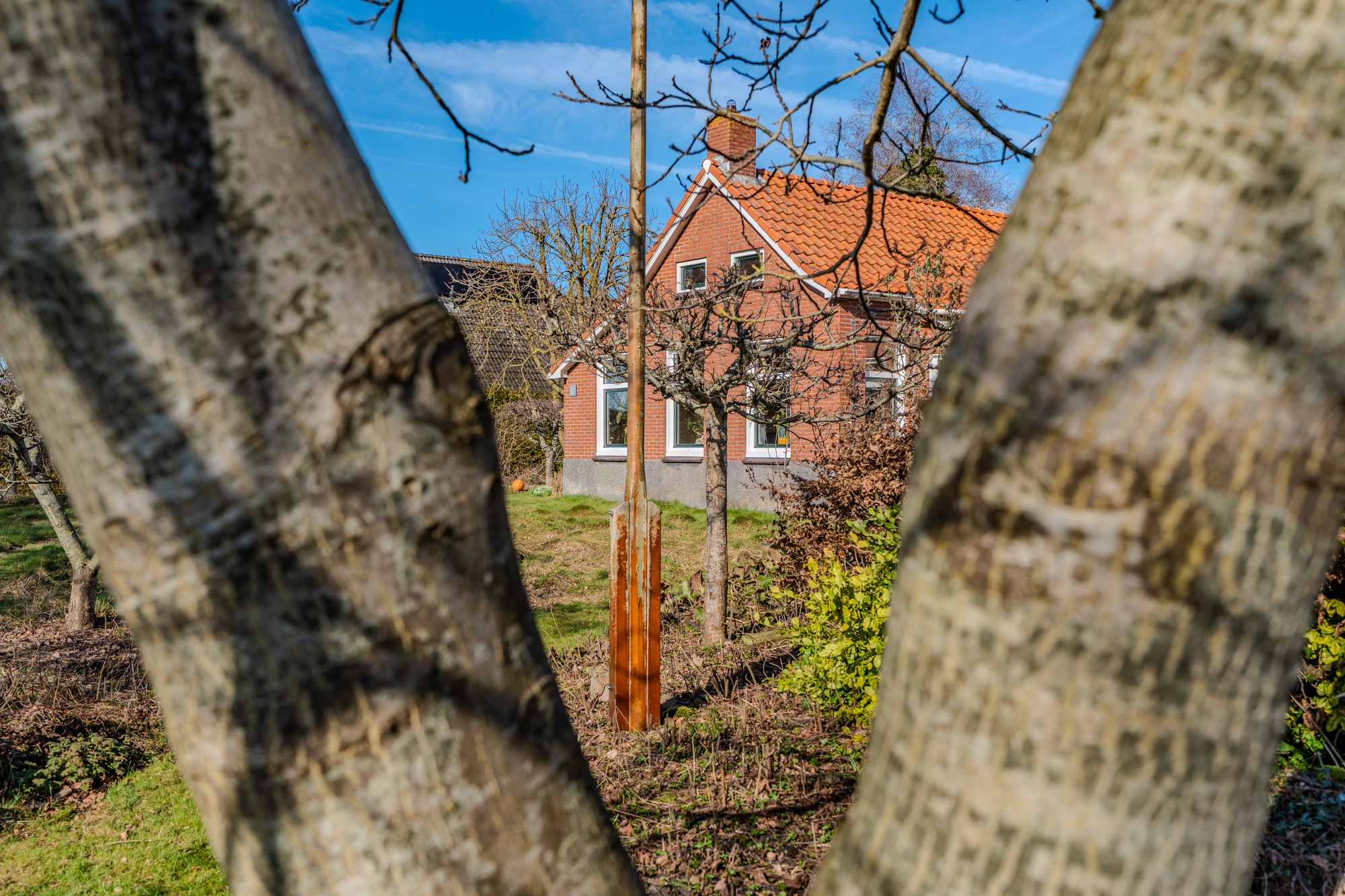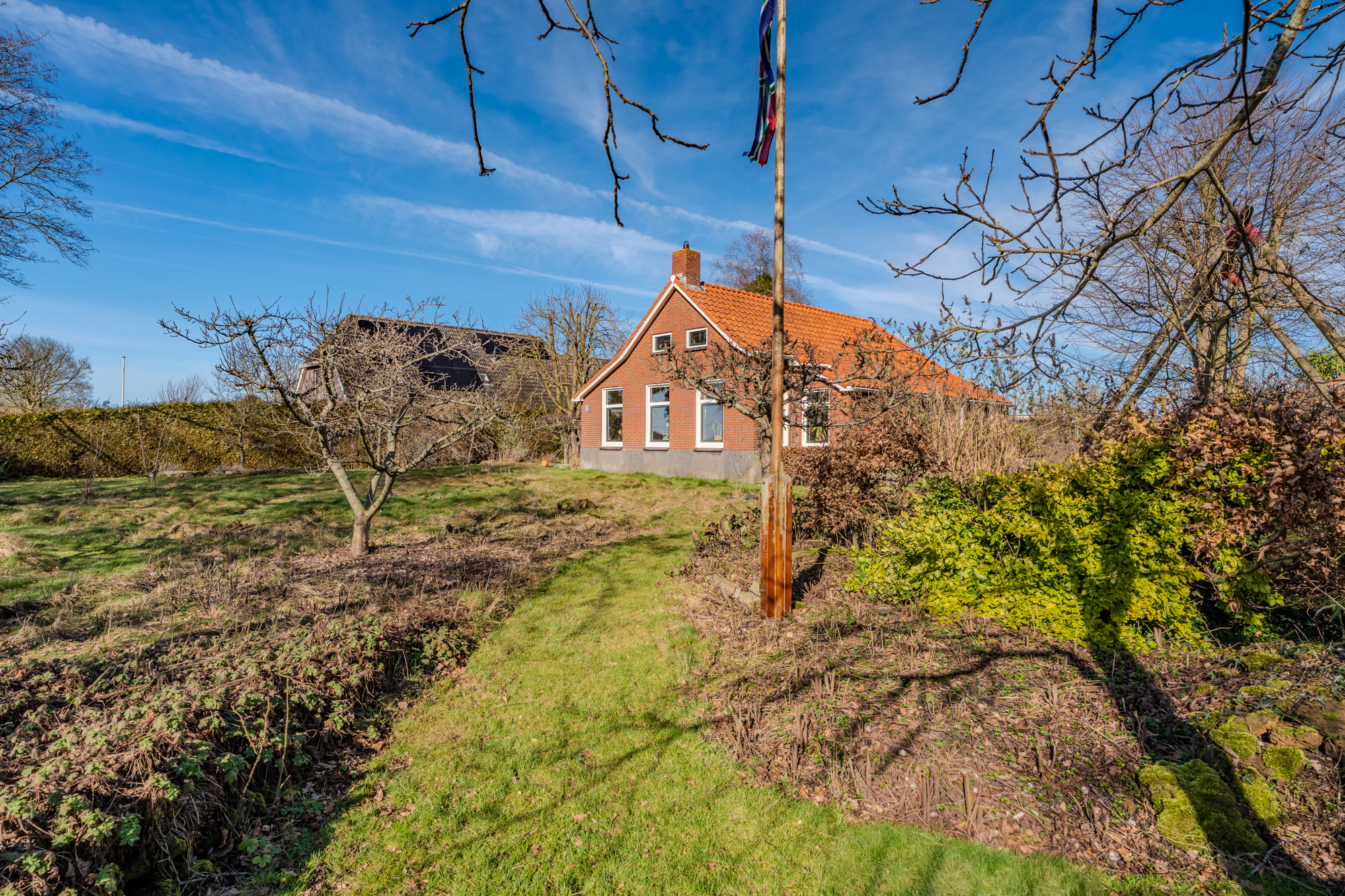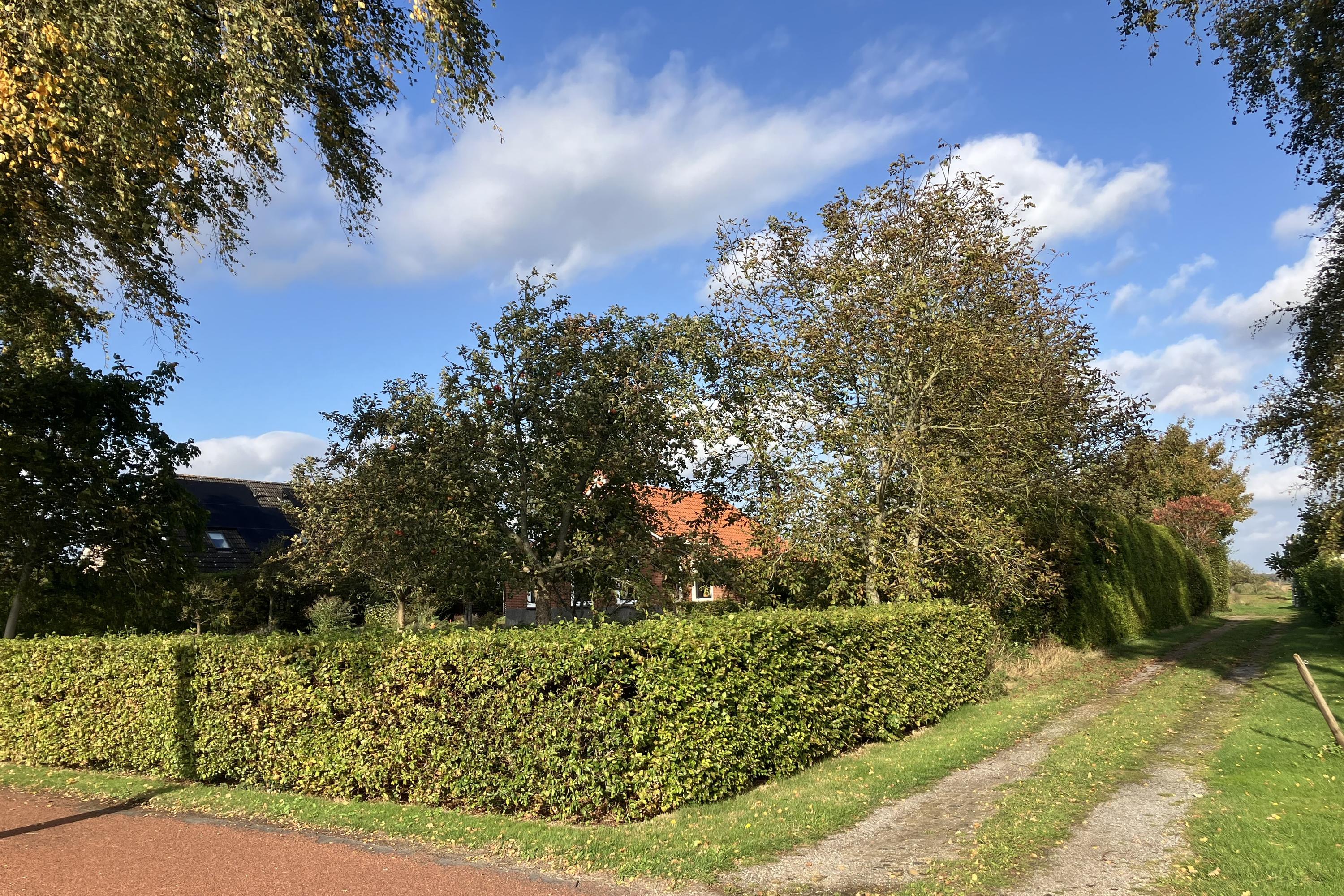 In de fraai aangelegde tuin is het altijd mogelijk om een schaduwrijk of zonnig zitplekje te vinden. Er zijn verschillende hoogstam vruchtbomen van oude appel-/en peer rassen, naast de tuin is een mandelig pad waarover met de auto de achterzijde van het perceel kan worden bereikt en achter het huis geparkeerd kan worden.