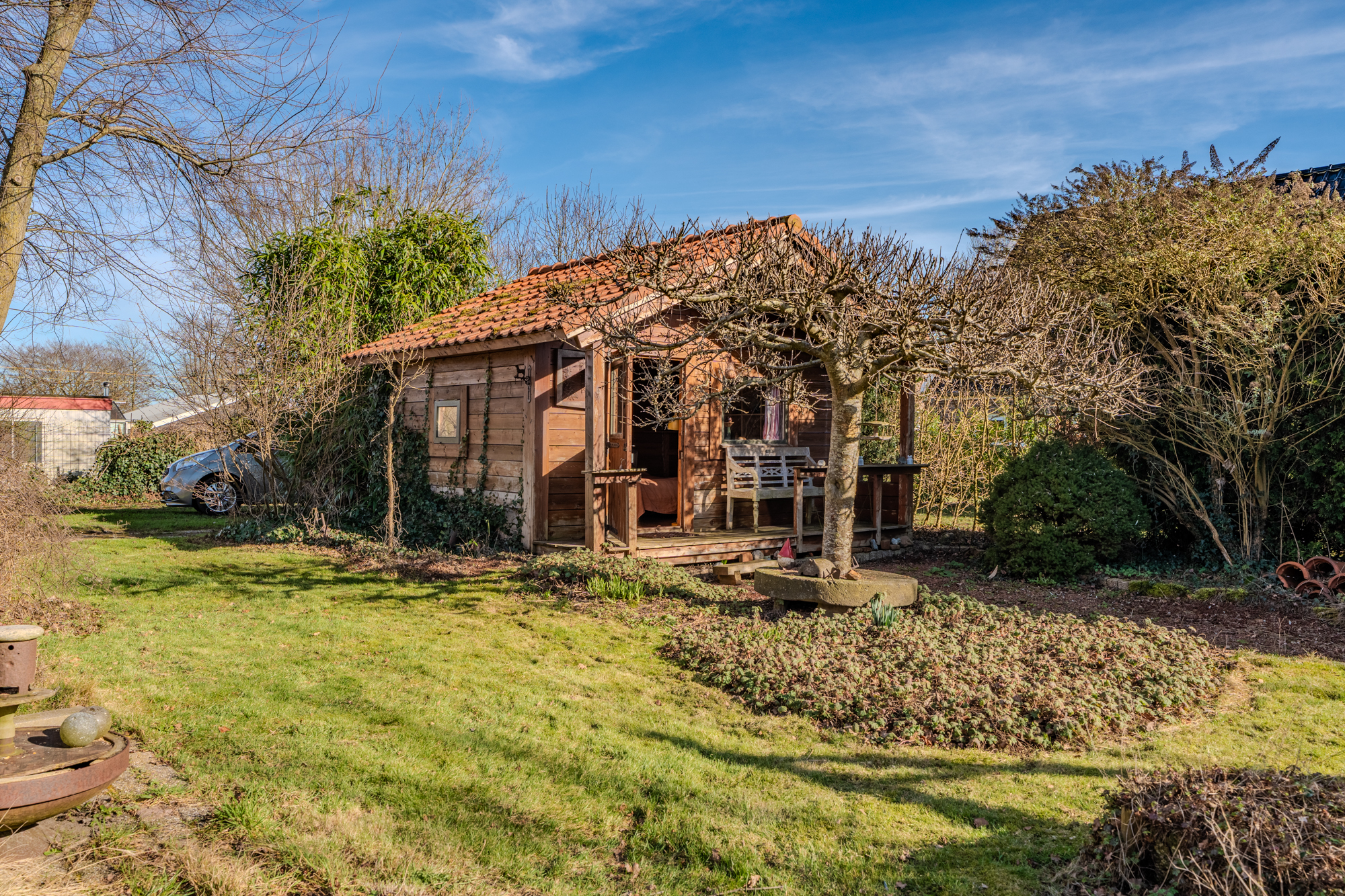- naast de woning is een tuinhuis welke geheel is ingericht als gastenverblijf met eigen sanitair (geschikt voor 2-3 personen).
