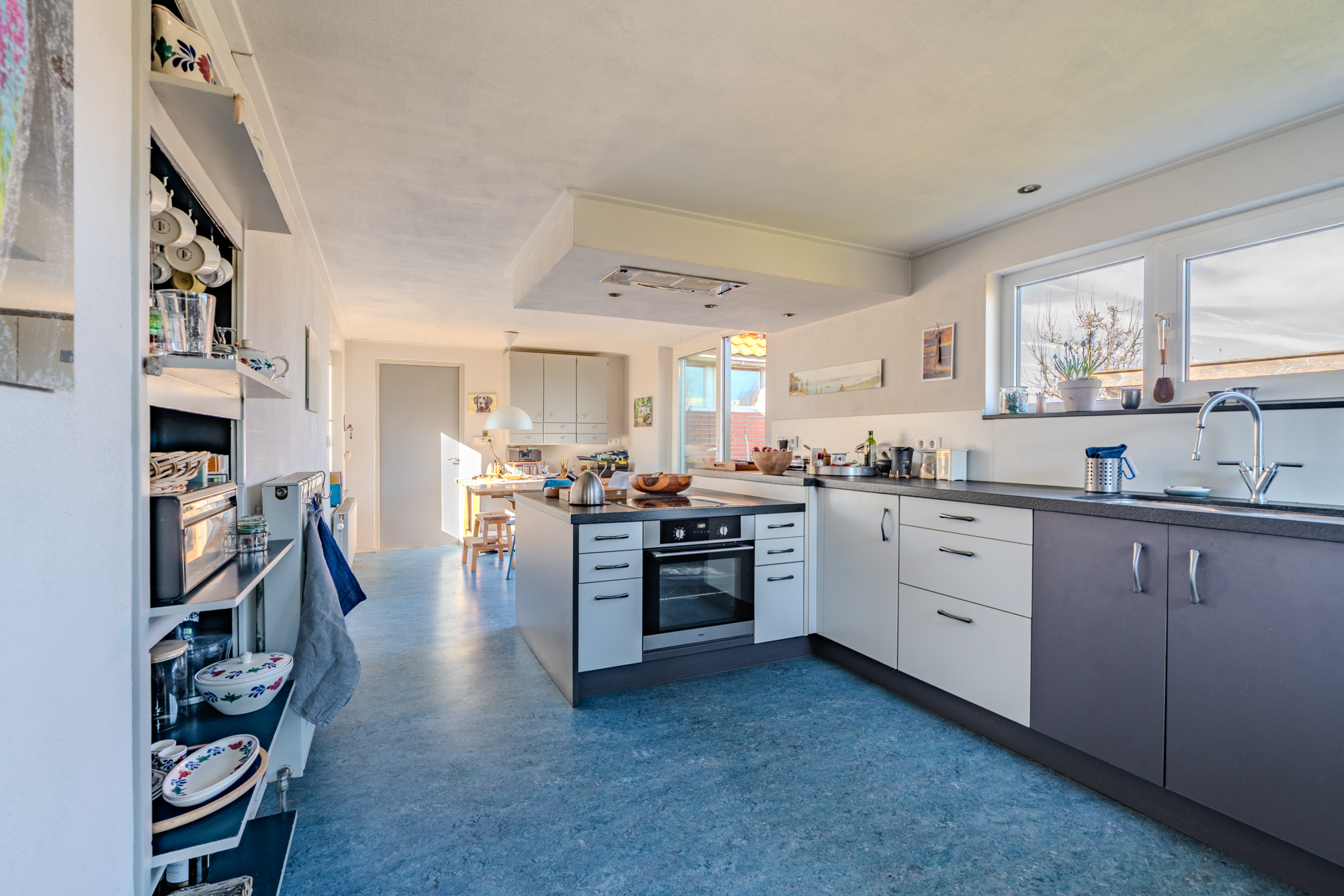 - grotendeels v.v. kunststof kozijnen met draai-kiep systeem.