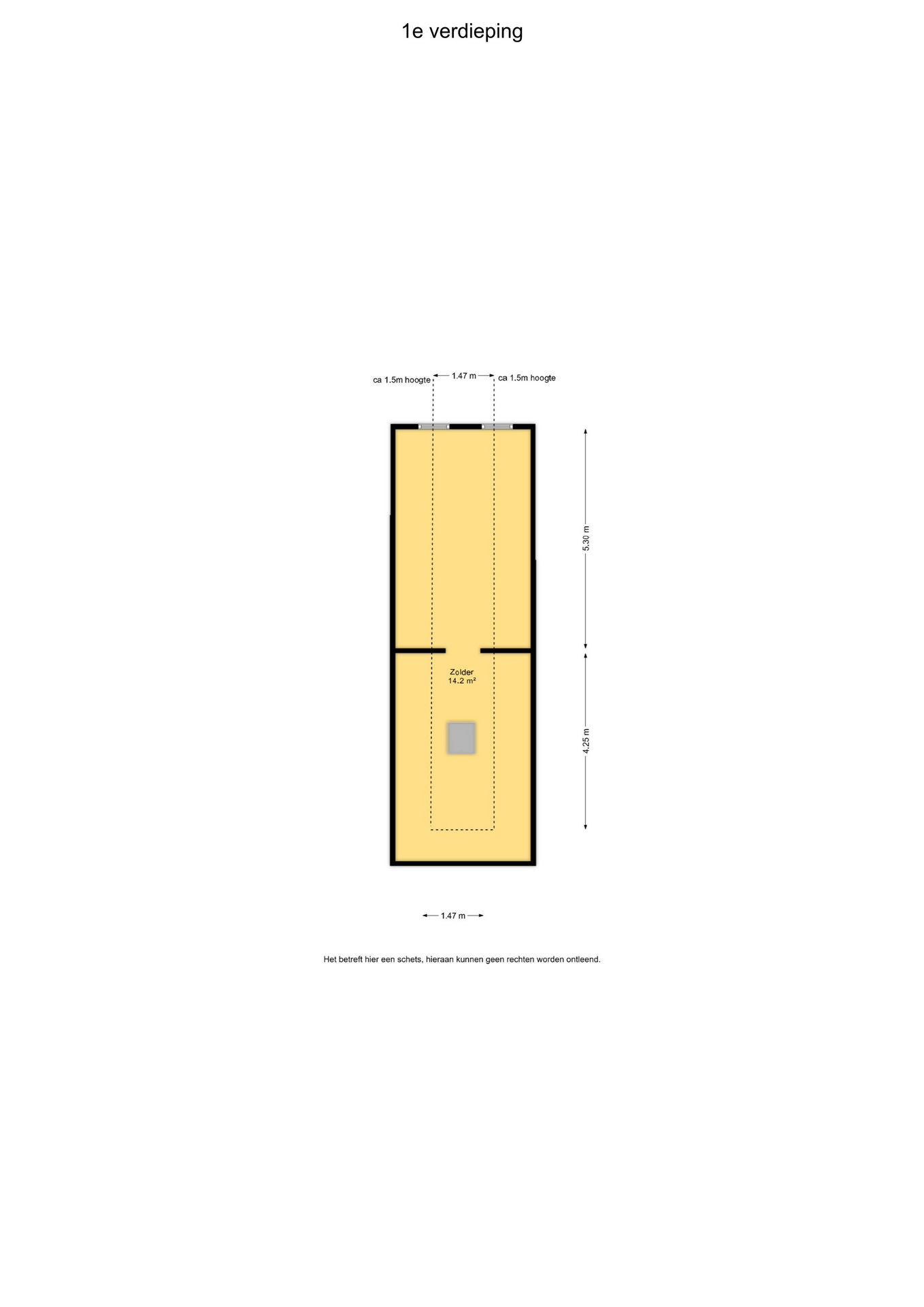 Verdieping: middels vlizotrap bereikbare zolder (stahoogte) met CV-opstelling en de mogelijkheid voor het realiseren van extra kamer(s).