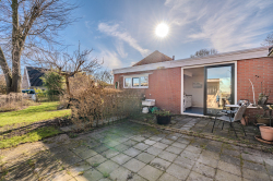 Begane grond: hal met zij-entree en meterkast; woonkamer (ca. 31.2m²) met houtkachel, schuifpui en wijds uitzicht over de landerijen; 3 slaapkamers (ca. 7.6m², 9.5m² en 12.7m²); badkamer met douchehoek en wastafel; toiletruimte; woonkeuken (ca. 25.9m²) met inbouwkeuken in U-opstelling v.v. diverse apparatuur en schuifpui naar de tuin; aangebouwde voormalige garage welke is verbouwd tot werkplaats (ca. 33.7m²) met openslaande deuren, kantoor (ca. 6.1m²) en eigen entree aan de voorzijde.