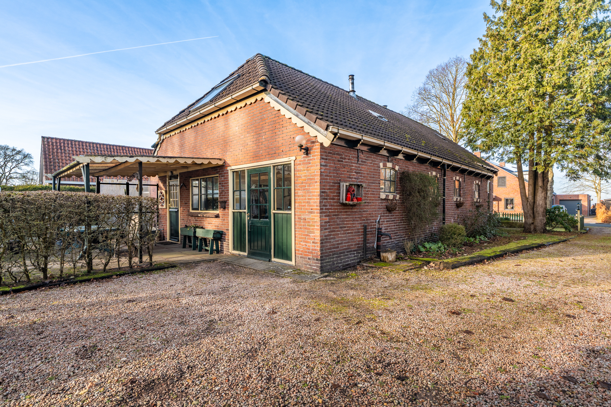 Op een schitterend perceel van ruim 2.000m² en grenzend aan een bosstrookje staat deze vrijstaande woning (type woonboerderijtje) met diverse bijgebouwen, erf en fraai aangelegde siertuin met vijverpartij en aan de achterzijde vrij uitzicht over aangrenzende landerijen. De woning met een slaap-/en badkamer op de begane grond is vanaf 1997 geheel sfeervol verbouwd en na-geïsoleerd.