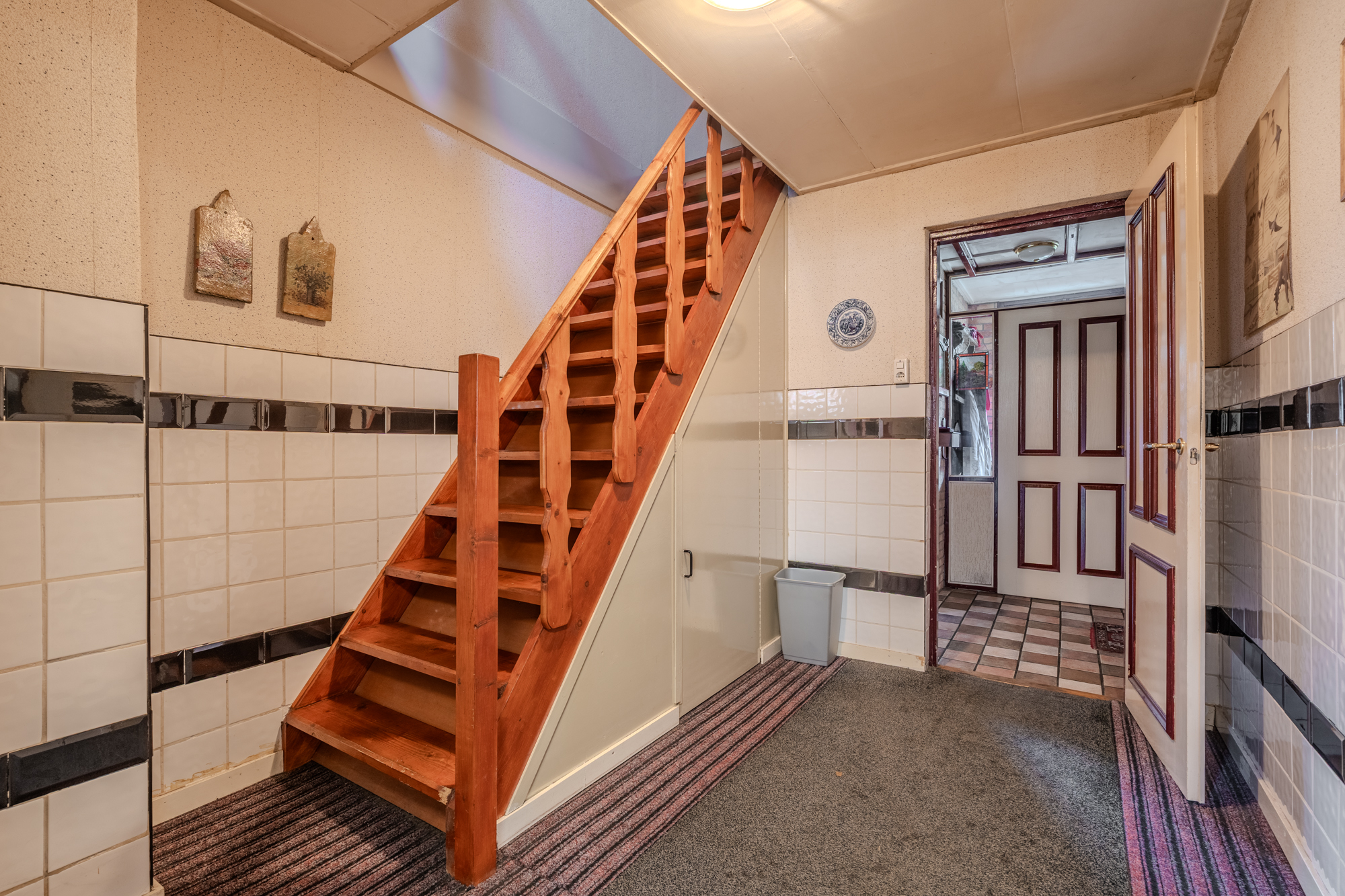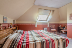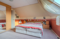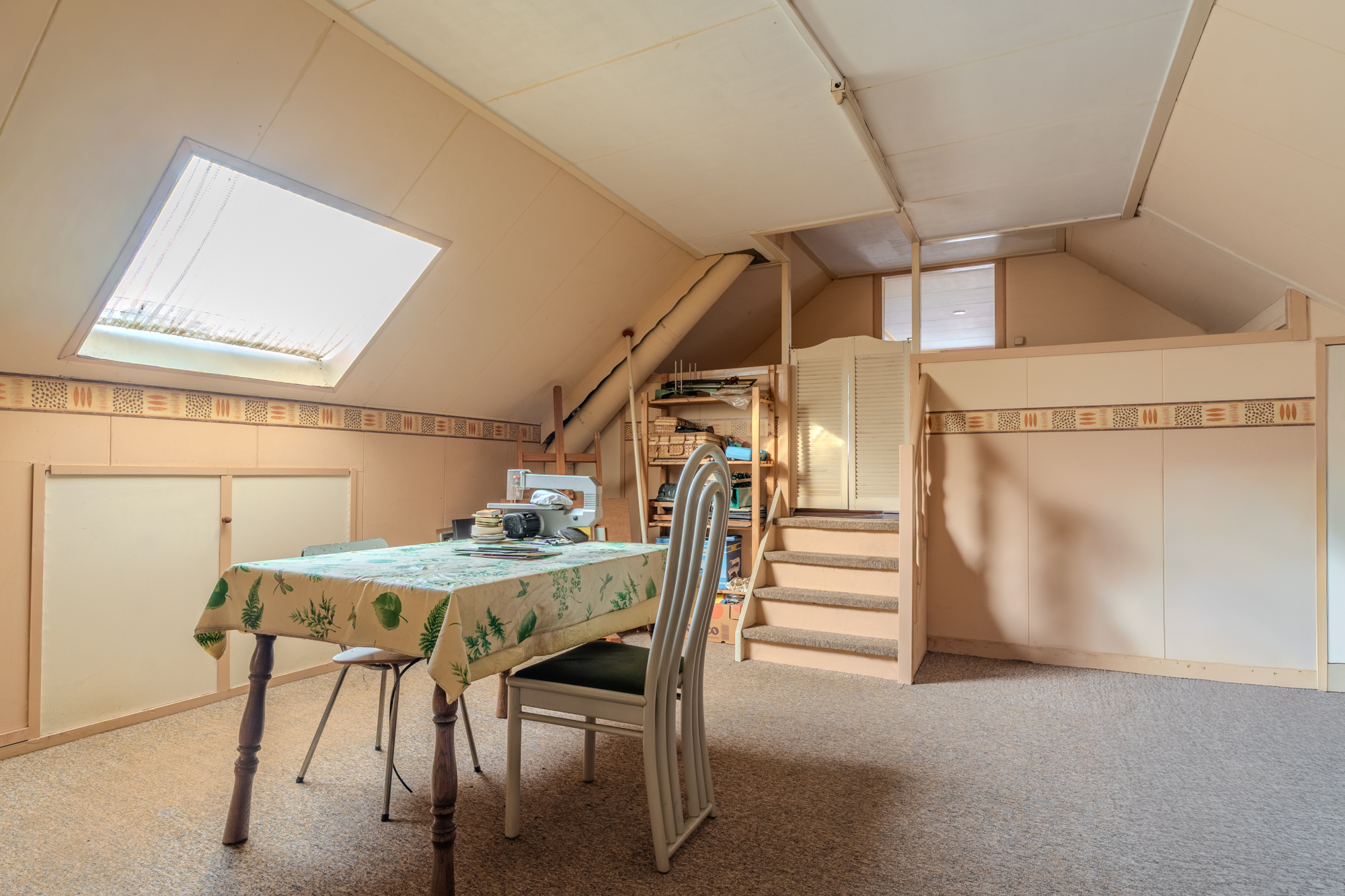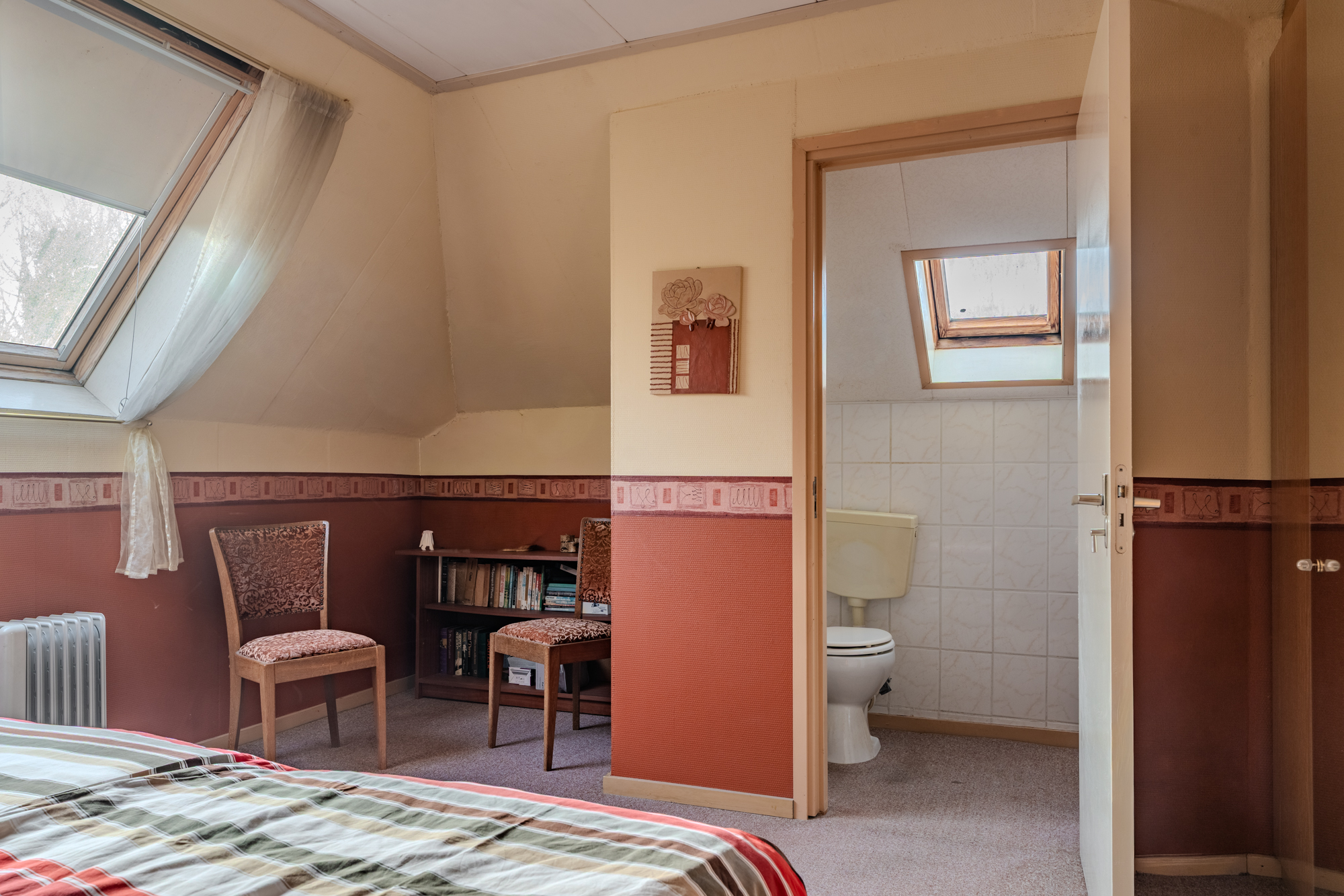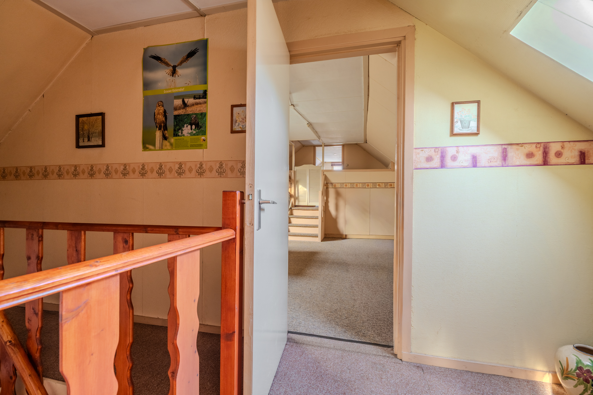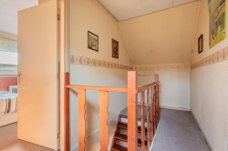 Verdieping: overloop; slaapkamer (ca. 16.7m²) aan de achterzijde met eigen toiletruimte; centrale hobbyruimte(ca. 22.6m²); overloop; slaapkamer (ca. 11.4m²) aan de voorzijde.